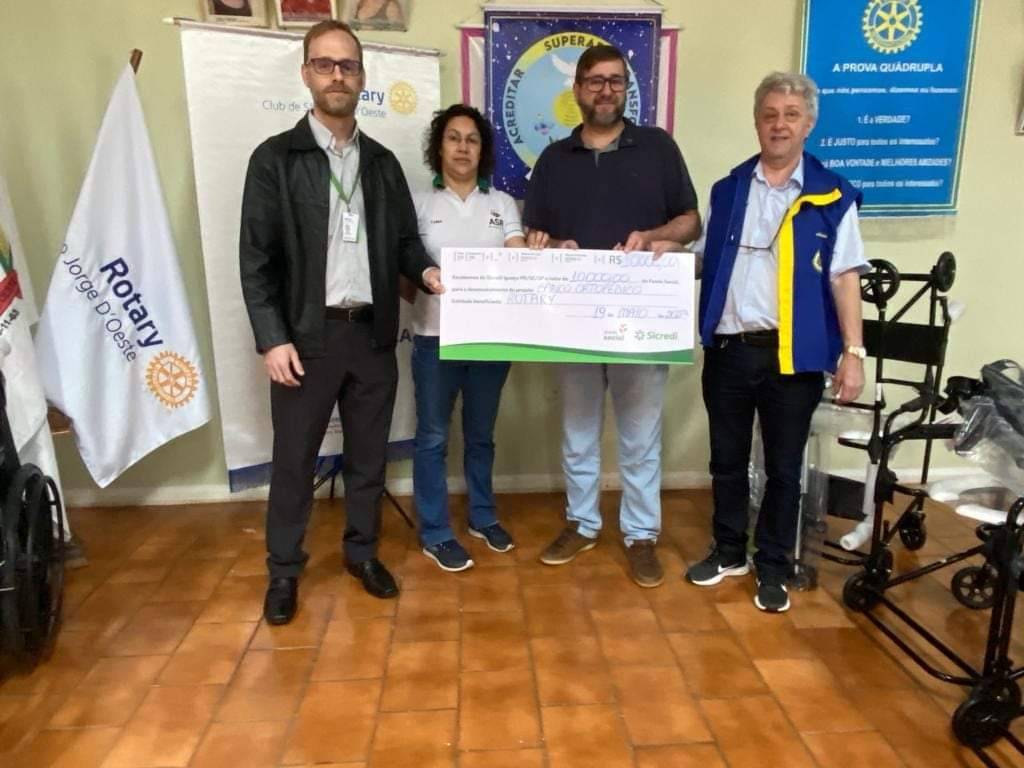 O Rotary Club de São Jorge D'Oeste adquiriu vários equipamentos para o banco ortopédico, tal iniciativa foi viabilizada através de projeto de captação de recursos do Fundo Social da SICREDI onde foi recebida a doação de mais de R$ 10.000,00, ainda foram investidos aproximadamente R$ 5.000,00 de recursos provenientes do Almoço/Costelão do Rotary realizado em Abril deste ano. Participaram da entrega o Presidente do Rotary Sandro Chiarello, Secretário do Rotary Ildomar Ragnini e o representante da SICREDI Juliano Bender.