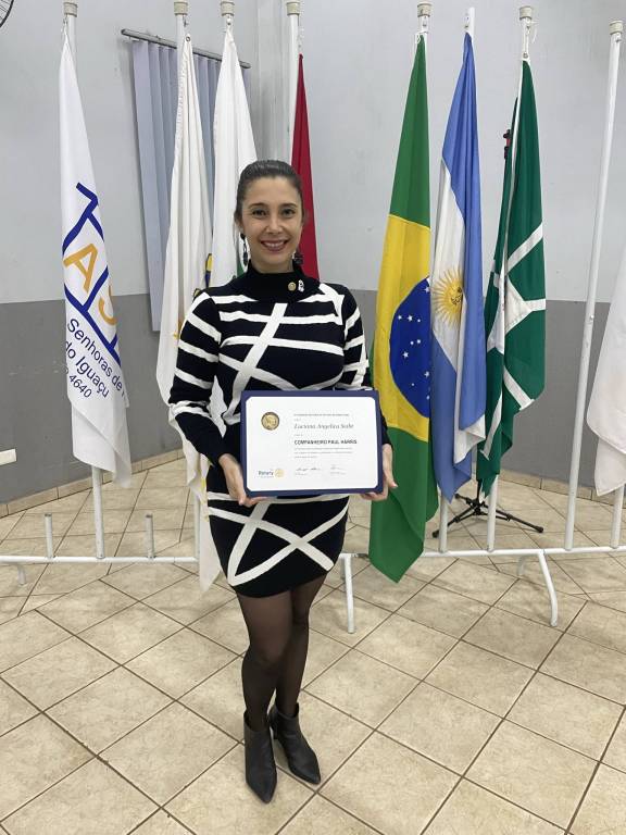 Em 31/7/2023, Luciana Angélica Seibt, companheira do Rotary Club de Foz do Iguaçu, recebeu o título PAUL HARRIS, das mãos do governador do distrito 4640, gestão 2023/2024, Antônio da Caz.
