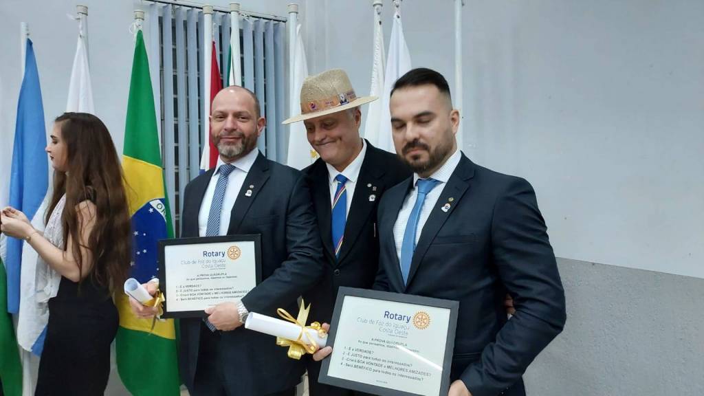 No dia 28 de junho de 2023, nas dependências da Casa da Amizade, estiveram reunidos os Rotary Club de Foz do Iguaçu-Costa Oeste, Rotary Club de Foz do Iguaçu-M´Boicy Cataras acompanhados do Rotaract Clube de Foz do Iguaçu-M´Boicy, onde aconteceu a cerimônia de transmissão de cargo dos presidentes e posse do novo Conselho Diretor de ambos os clubes para a nova Gestão 2023-24. Na ocasião, foram admitidos novos companheiros no Rotary Club de Foz do Iguaçu-Costa Oeste, o companheiro Rodrigo Alexandre Milani Duarte e o companheiro Paulo Gomes, afilhados do Presidente da gestão 2023-24, Marcos Antonio Jahnke. O evento contou com a presença de 97 convidados entre rotarianos , rotaractianos e toda família rotária dos três clubes. Na ocasião, foi entregue ao nosso companheiro Antoninho Ricardo Sabbi, o medalhão da F.R. Arch C. Klump, em homenagem a todos os anos de dedicação à Comissão da Fundação Rotária como também à Uopecan . Logo após, foi entregue o Título PHF ao companheiro Marcos Antonio Jahnke agraciado pelo presidente Emerson Dehin Garcia, em homenagem ao trabalho na Comissão da Fundação Rotária do clube na gestão 2022-23, e também o clube entregou ao presidente Emerson Dehin Garcia, o Pingente PHF uma safira, em homenagem e reconhecimento pelo valoroso trabalho e dedicação do presidente Emerson na gestão 2022-23. Logo em seguida o evento, foi acompanhado com um delicioso jantar e muito companheirismo.