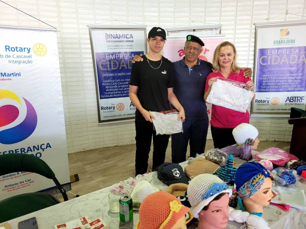 Na reunião do Rotary Club de Cascavel-Integração realizado no dia 21/08/2023 foi apresentado o Projeto AMOR EM FIOS, que foi iniciado em 2017 com o objetivo de resgatar parte da dignidade e autoestima dos pacientes em tratamento de câncer. Na oportunidade foram doados mechas de cabelo natural e também alguns lençoes por parte dos companheiros e convidados.