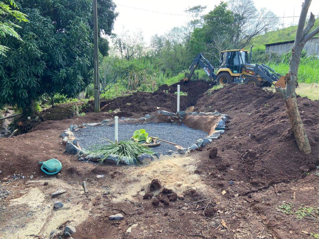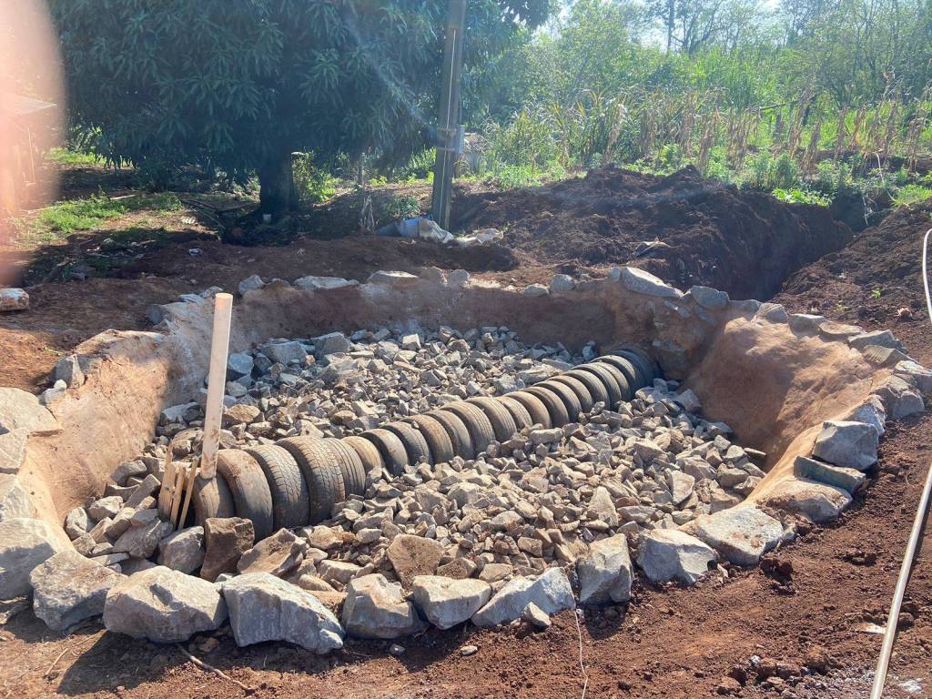 Após a conclusão deste sistema de tratamento de esgoto, no local recuperado onde era esta fossa a céu aberto, através da deposição de uma camada de solo limpo e livre de contaminantes foi implantado uma horta para a família (com lona), proporcionando uma aos membros familiares uma maior sustentabilidade e qualidade de vida, onde era um passivo ambiental com uma fossa virou uma horta para a produção de alimentos saudáveis.