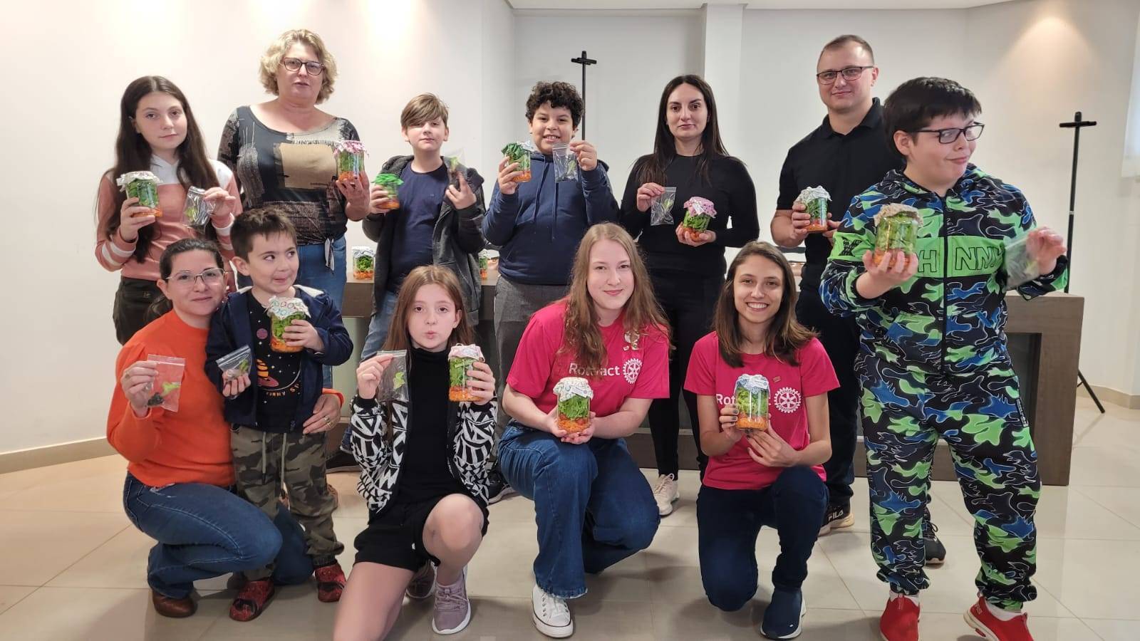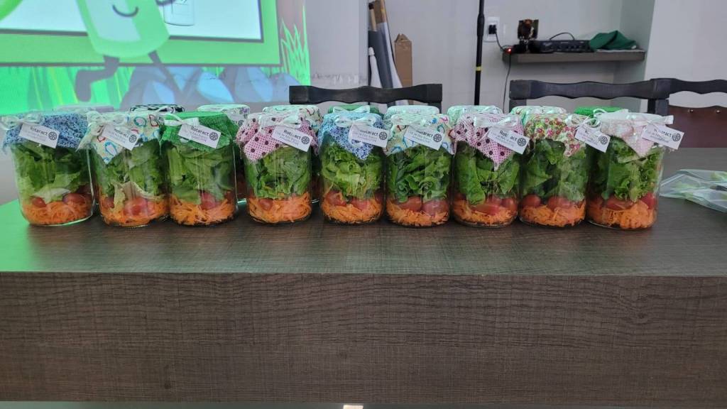 Uma das partes mais emocionantes do dia foi a experiência gastronômica proporcionada aos jovens do Rotakids. Os talentosos membros do Rotaract Club prepararam com carinho uma excelente salada no pote, destacando os benefícios de uma alimentação equilibrada e sustentável