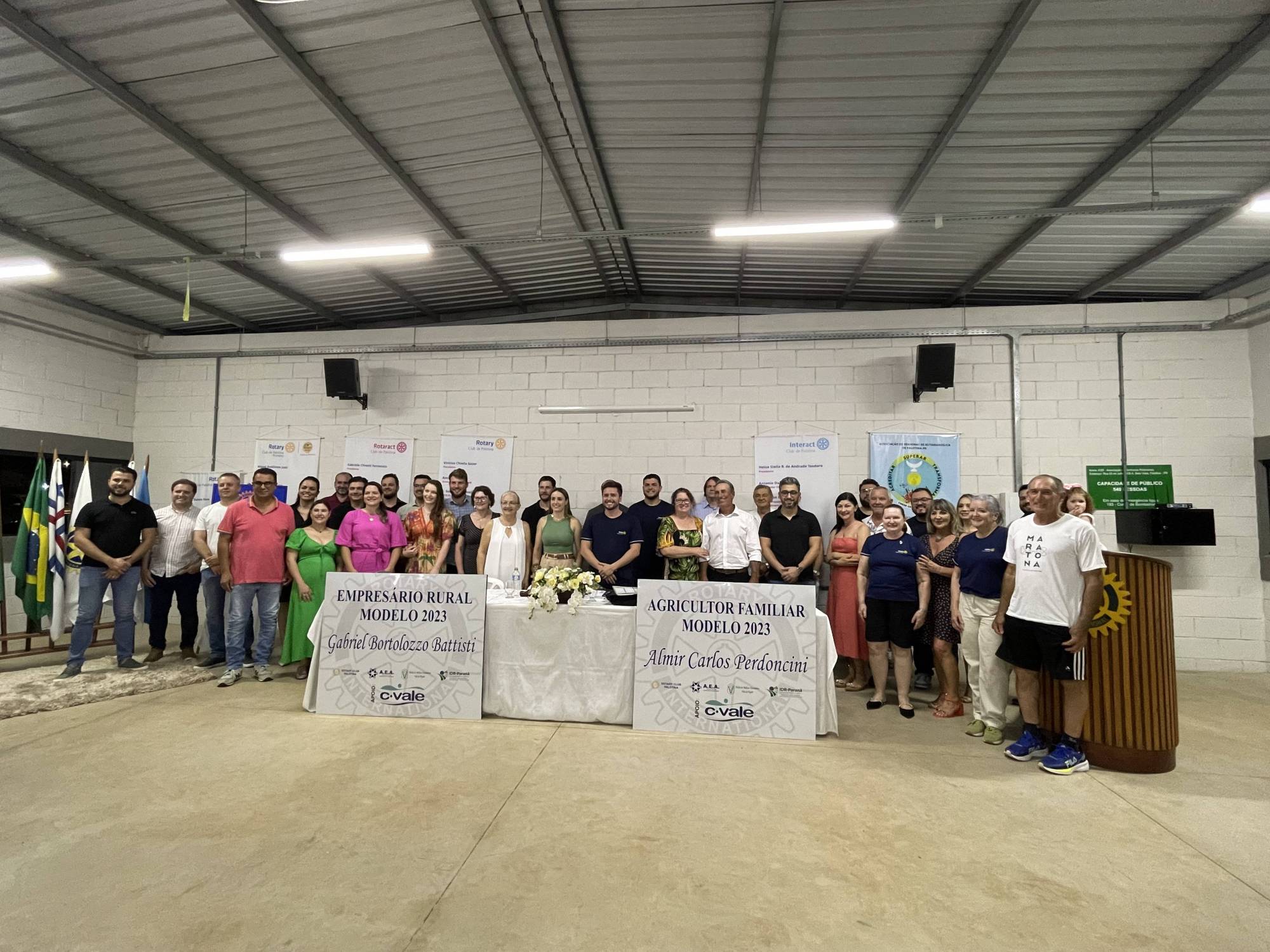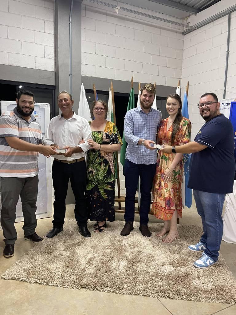 Na noite da terça feira dia 26 de setembro o Rotary Club de Palotina realizou uma festiva para a entrega de doações a entidades, se fizeram presentes os vencedores do Agricultor Modelo 2023, Gabriel Bortolozzo Battisti e esposa e Almir Carlos Perdocini e esposa, bem como os patrocinadores e representantes das entidades beneficiadas.
