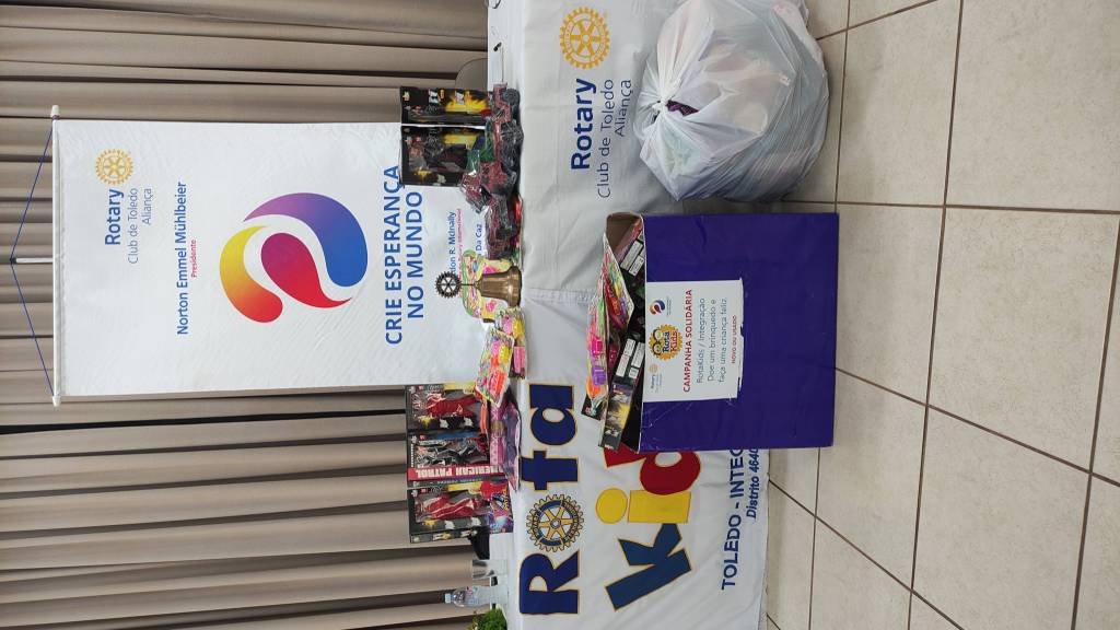 O Rotary Club de Toledo Aliança, junto do Conselho Diretor do RotaKids de Toledo Integração, realizou em sua 14° reunião ordinária doações de brinquedos para contribuir com a campanha solidária ''Doe um brinquedo e faça uma criança feliz''. Doar é uma forma de transmitir alegria, de levar sorrisos e de criar esperança de um mundo melhor e feliz. Doar é um ato de amor.