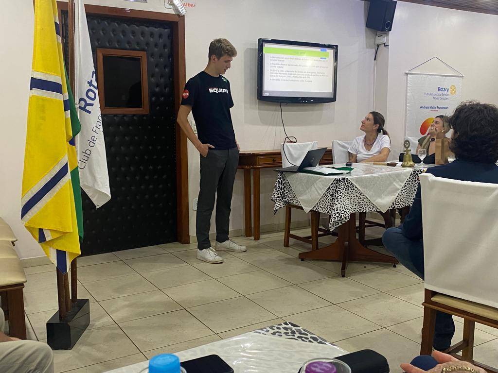 Na reunião do dia 26 de setembro de 2023, o jovem Altair de Paula - Tatau, que retornou da India, fez a apresentação deste período em que lá esteve. Como é uma cultura muito diferente, a apresentação terá uma segunda parte. Também na noite, o intercambista Nik REICHHARDT de Frankfurt - Alemanha fez sua apresentação antes de retornar ao seu país.