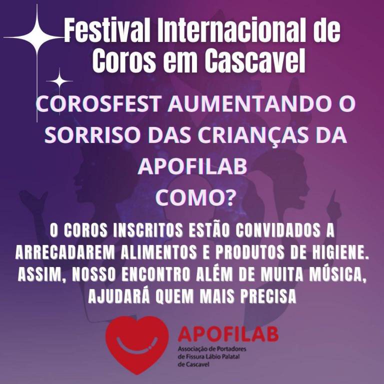 Os ingressos para a participação do festival foi 1 Kg de alimento não perecível que foi destinado para a APOFILAB-Associação dos Portadores de Fissura Lábio Palatal do Oeste do Paraná, que será de muita relevância para a manutenção das refeições dos alunos e familiares que frequentam a entidade durante o processo de recuperação.