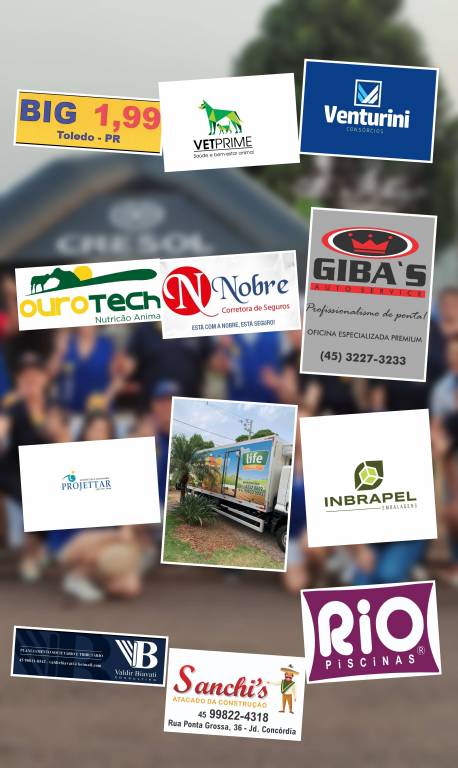 Nessa importante missão, a qual foi muito bem sucedida, não podemos deixar de agradecer todos os patrocinadores envolvidos nessa causa, sendo eles: Venturini Consórcios, Jorge Bischoff, Ourotech, Kumon, Flor de Cactus, Big 1,99 , Cresol, Vet Prime, Projettar Engenharia e Arquitetura, Grameira Santa Helena, Rastrek Prime Toledo, Nobre Seguros, Casas Brasil, Valdir Biavati Consulting , Gibas Auto Service, JM Leilões, I-rad, Bse Solar, Inbrapel, Sanchis, Rio Piscinas, Grupo Difere, Vertys Solar Group e Sucos Life.