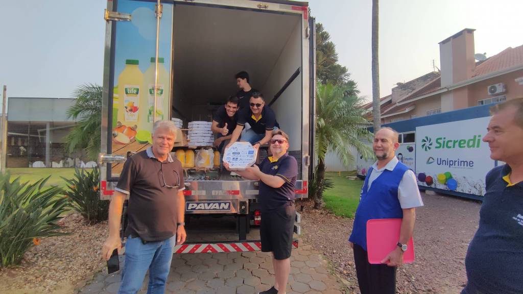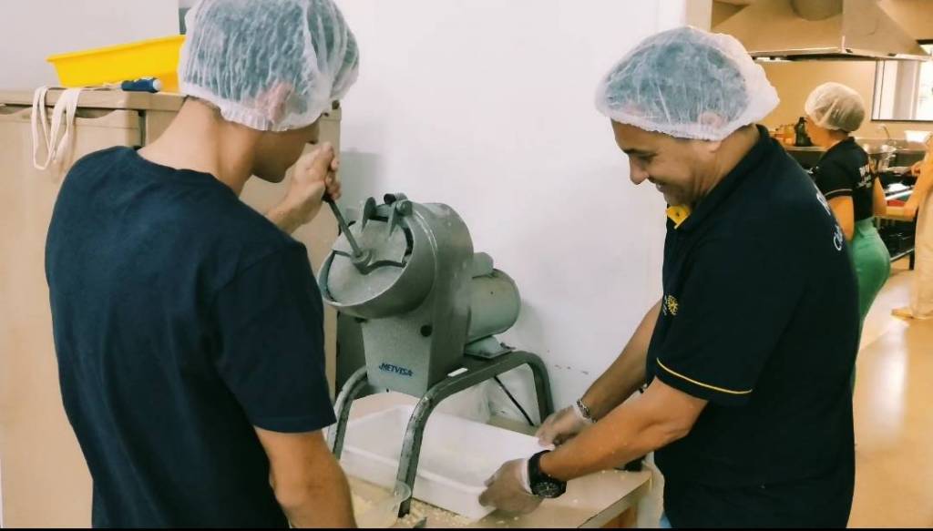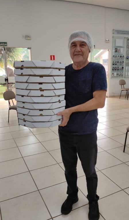 No sábado dia 07/10/2023, às 6hrs da manhã, nossos companheiros já estavam todos reunidos para a confecção dos três sabores de pizza – calabresa, bacon e milho e marguerita – com o coração alegre e missão cumprida, às 14hrs a produção foi concluída e as pizzas já estavam no caminhão refrigerado prontas para serem entregues!