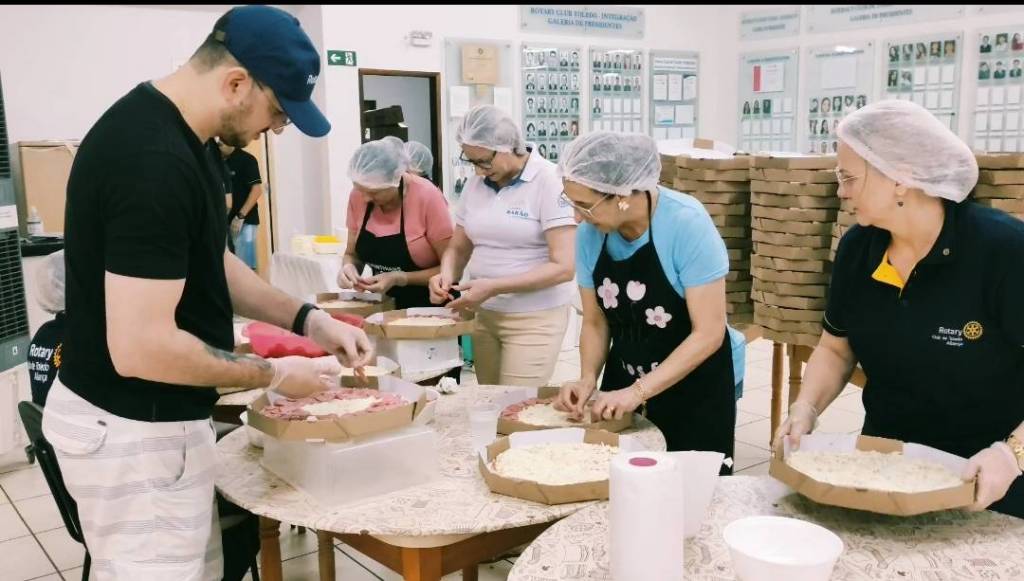 Inspirados no ideal de servir, as pizzas foram vendidas, confeccionadas e entregues no sistema drive thru, pelas mãos das rotarianas e rotarianos do clube e com a participação especial de voluntários.