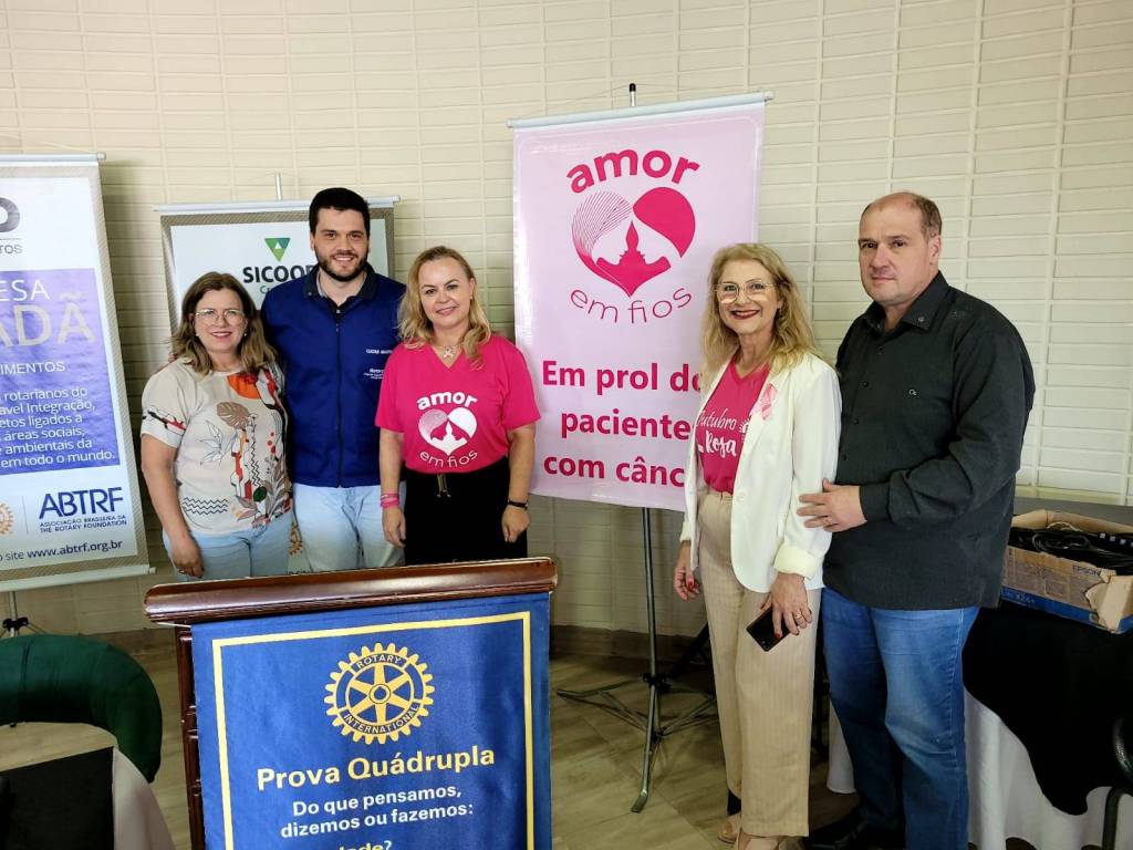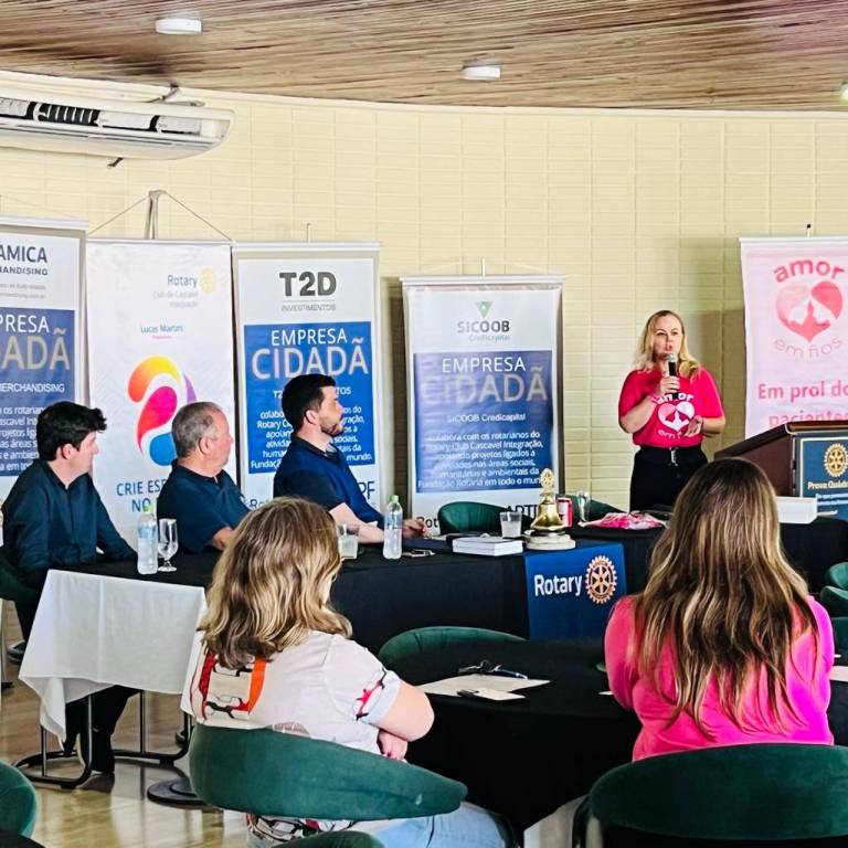 Na reunião do Rotary Club de Cascavel-Integração realizada no dia 09/10/2023 nas dependências do Cascavel Country Club o tema central foi alusivo ao Outrubro Rosa, com a palestra proferida pela Sra. Simone Sarolli Preisner Braga Cortes, coordenadora do projeto Amor em Fios, sobre as diversas formas de manifestação da doença, bem como as maneiras de realização do diagnóstico precoce e o tratamento.