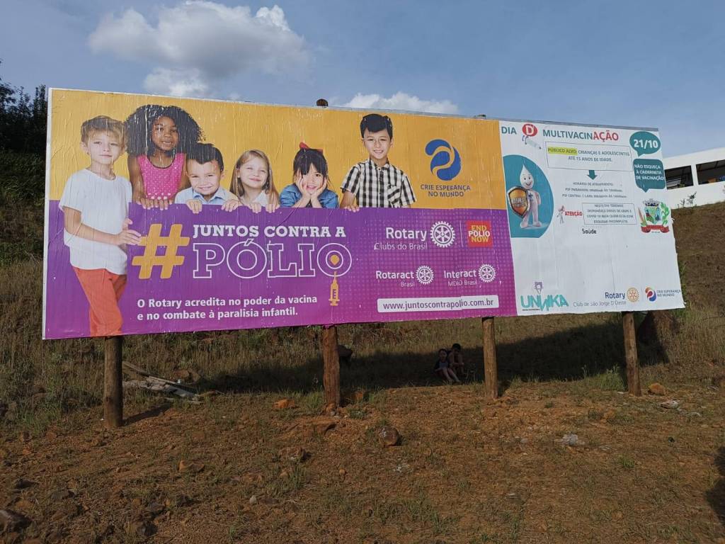 Na data de ontem 16/10/2023 o Rotary Club de São Jorge D’Oeste juntamente com a equipe da Secretaria Municipal de Saúde lançaram a campanha de Erradicação da Pólio (alusivo ao dia 24 de Outubro) e do Dia D da Multivacinação na cidade de São Jorge D’Oeste. Na ocasião foi implantado um outdoor as margens da Avenida Prefeito Adelarte Debortoli com a arte da campanha do Rotary e do Dia D. Em sua fala o Presidente do Rotary local Sr. Sandro C. Chiarello falou da importância desta ação, a erradicação da pólio é um compromisso assumido pelo Rotary a nível mundial onde contribui tanto financeiramente quanto com serviços prestados pelos seus associados, também agradeceu a receptividade que o Rotary teve junto a Secretaria Municipal de Saúde pela equipe do Secretário Luiz Matei que prontamente abraçou a ideia e participa juntamente com sua equipe desta campanha, agradecimentos também ao Sr. Douglas Zanella da UNNIKA que implantou o outdoor dando maior ênfase a campanha para que atinja um maior número de pessoas.