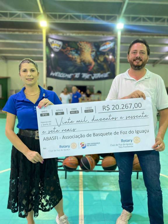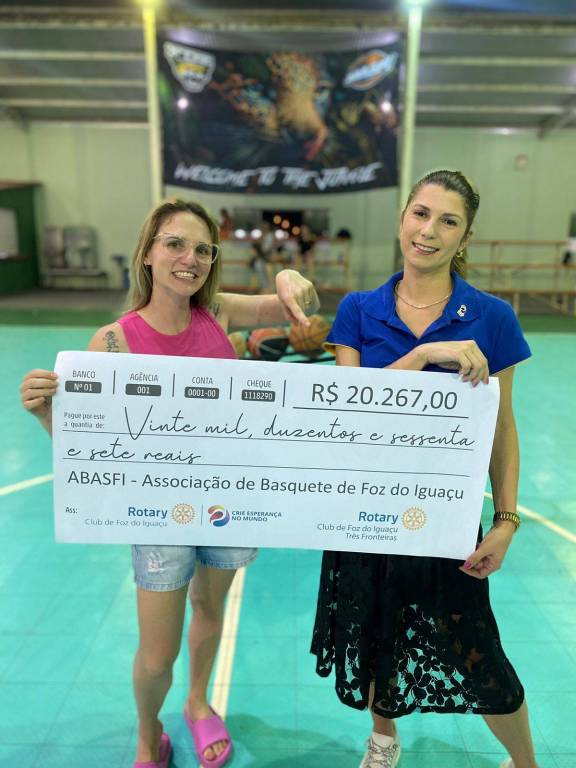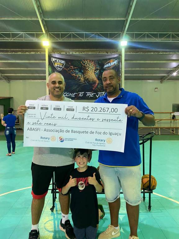 O Rotary Club de Foz do Iguaçu e o Rotary Club de Foz do Iguaçu – Três Fronteiras, através de seus presidentes, entregaram ao presidente da ABASFI, Mahatma Ghandi Saleh e ao professor fundador da associação, Claudio Lisboa, um cheque simbólico no valor de R$ 20.267,00 referente a 70% do lucro do chá bingo solidário que ocorreu no dia 01/10/2023.