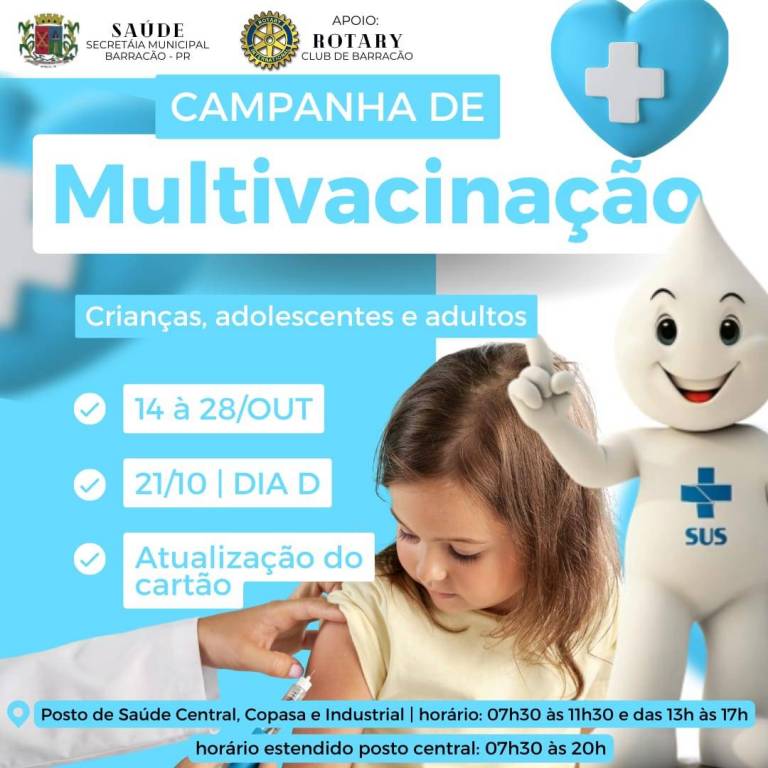O Rotary Club de Barracão juntamente com a Secretaria de Saúde traçaram trabalho quanto a campanha de Vacinação contra a Poliomielite nas Unidades de Saúde do Município.
