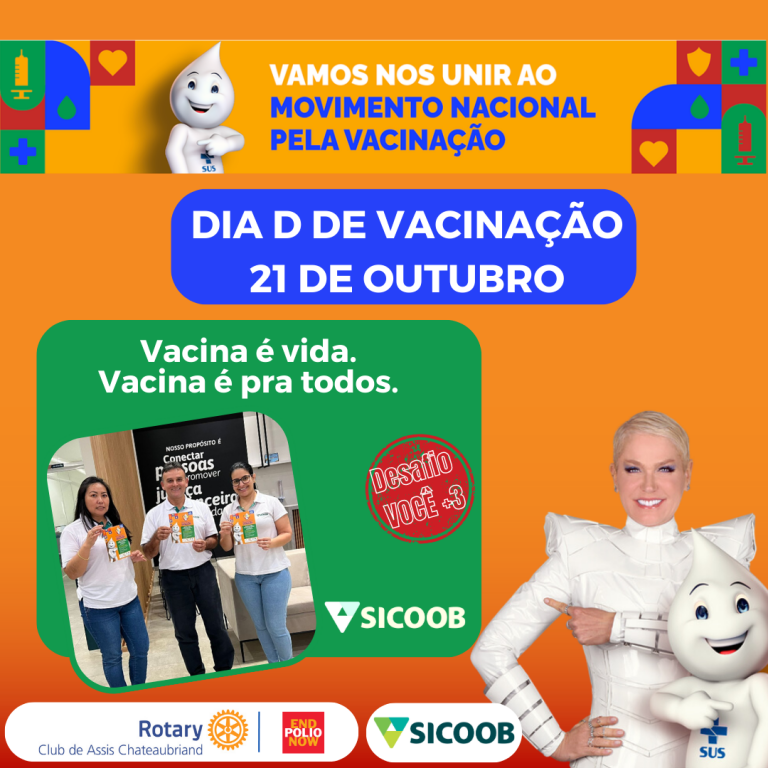 ROTARY CLUB, INTERACT CLUB, GOVERNO MUNICIPAL, COOPERATIVAS DE CRÉDITO, ASSOCIAÇÃO DE CLASSE E INSTITUIÇÕES DE ENSINO, SE UNEM NA CAMPANHA DE VACINAÇÃO.