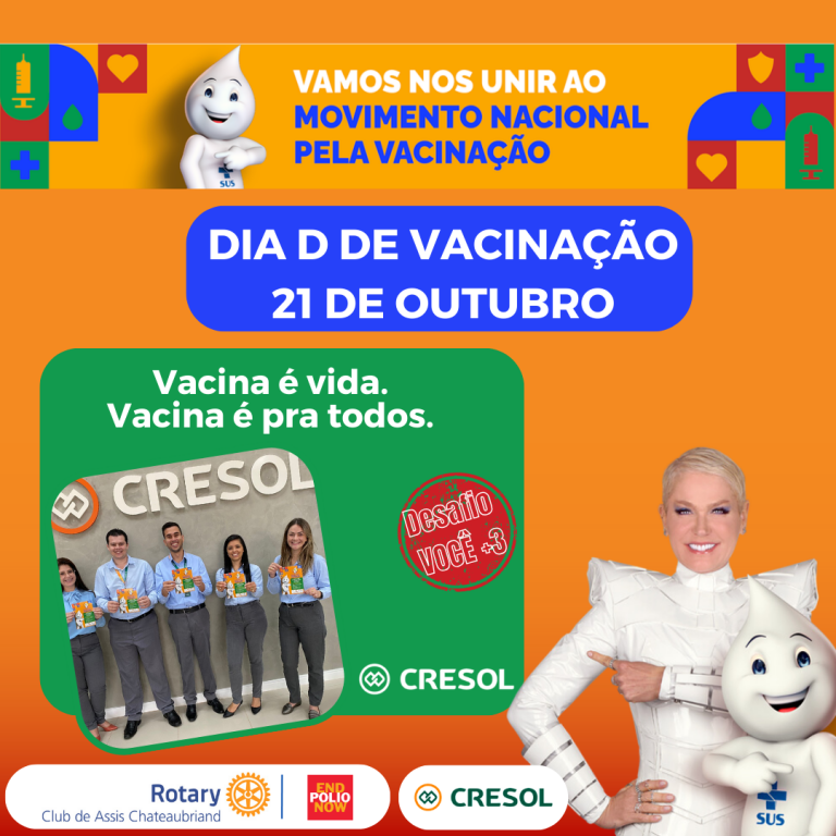 O Governo de Assis Chateaubriand, através da Secretaria de Saúde, promove a Campanha de Multivacinação para crianças e adolescentes menores de 15 anos, como parte do Movimento Nacional pela Vacinação. A campanha, que acontece entre os dias 14 e 28 de outubro, tem como objetivo atualizar a carteirinha de vacinação e garantir que todas as crianças e adolescentes estejam imunizados contra diversas doenças. Durante a campanha, todas as Unidades de Saúde estarão abertas das 8h às 12h e das 13h30 às 17h30 para atender a população. A Unidade do Maria Efigênia terá atendimento até as 20h. É importante lembrar que os responsáveis devem comparecer com a criança munida de RG, CPF e carteirinha de vacinação. Além da atualização da carteirinha de vacinação, será entregue a Declaração de Vacina, documento necessário para a matrícula escolar. Portanto, é fundamental que os responsáveis aproveitem a campanha para garantir que seus filhos estejam em dia com as vacinas. No sábado, dia 21 de outubro, será realizado o Dia D da campanha em todas as unidades. Na sede, o atendimento será durante todo o dia sem intervalo para almoço. Já nas unidades dos patrimônios e distritos, o atendimento será das 8h às 12h e das 13h30 às 17h. Esses são os locais de vacinação: POSTO CENTRAL, CIASP, UBS de Bragantina, UBS de Encantado, UBS de Silveirópolis, UBS do Nice, UBS de Terra Nova, UBS do Eng.Azaury, UBS do Jardim Mônaco, UBS do Jardim Cristo Rei, UBS do Jardim Araçá, UBS do Jardim Panorama. Nesse ano de 2023, o Rotary Club de Assis Chateaubriand e Interact Club, sob a organização da Secretaria de Saúde, com o apoio da ACIAC, Lions Clube, CRESOL, SICOOB, SICREDI, IFPR e Secretaria Municipal de Educação, são parceiros na conscientização e divulgação do dia D: 21 de outubro (sábado). O Rotary acredita no poder da vacina e no combate à paralisia infantil e Vacinas salvam vidas.