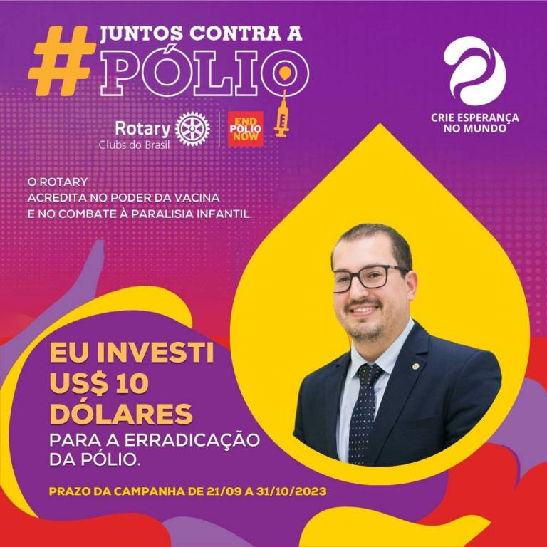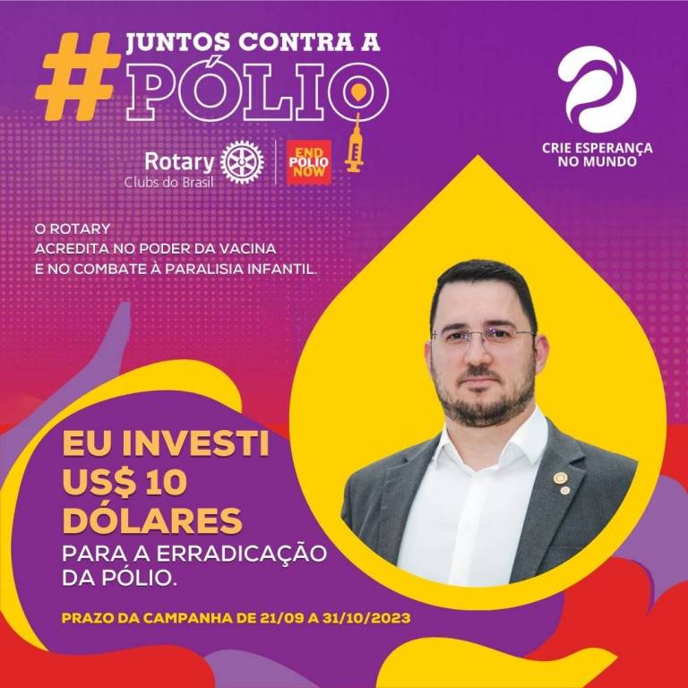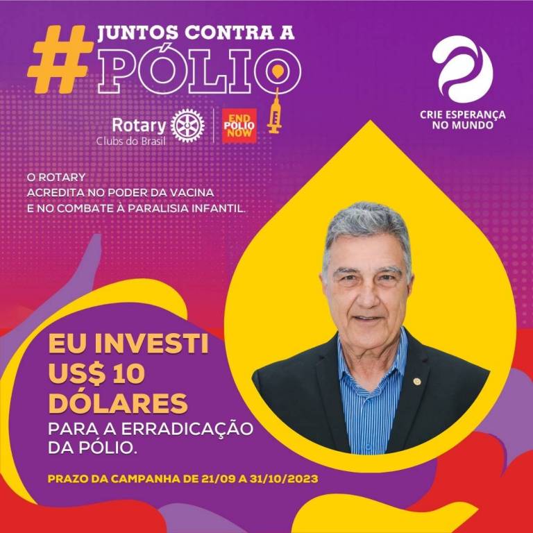 O Rotary Club de Toledo - Aliança é o clube com 100% de arrecadação do investimento dos US$10 dólares para a erradicação do dia da pólio.