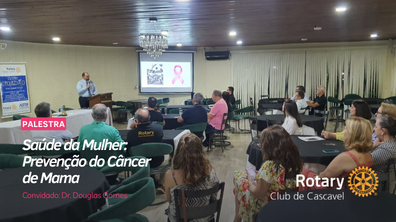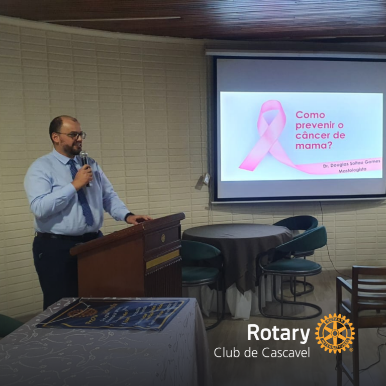 Ainda com as atividades do Outubro Rosa em foco, o Rotary Club de Cascavel recebeu no dia 07/11/2023 o médico mastologita Dr. Douglas Gomes, para falar dos cuidados e prevenção ao Cancêr de Mama. Na oportunidade, o palestrante expôs as principais causas, sintomas e prevenção, além de dar dicas importantes sobre o diagnóstico precoce. Com a presença de associados e convidados, a palestra despertou grande curiosidade nos participantes, que puderam sanar suas dúvidas em uma rodada de perguntas. Agradecemos ao Dr. Douglas e a todos os presentes por tornarem possível essa incrível palestra.