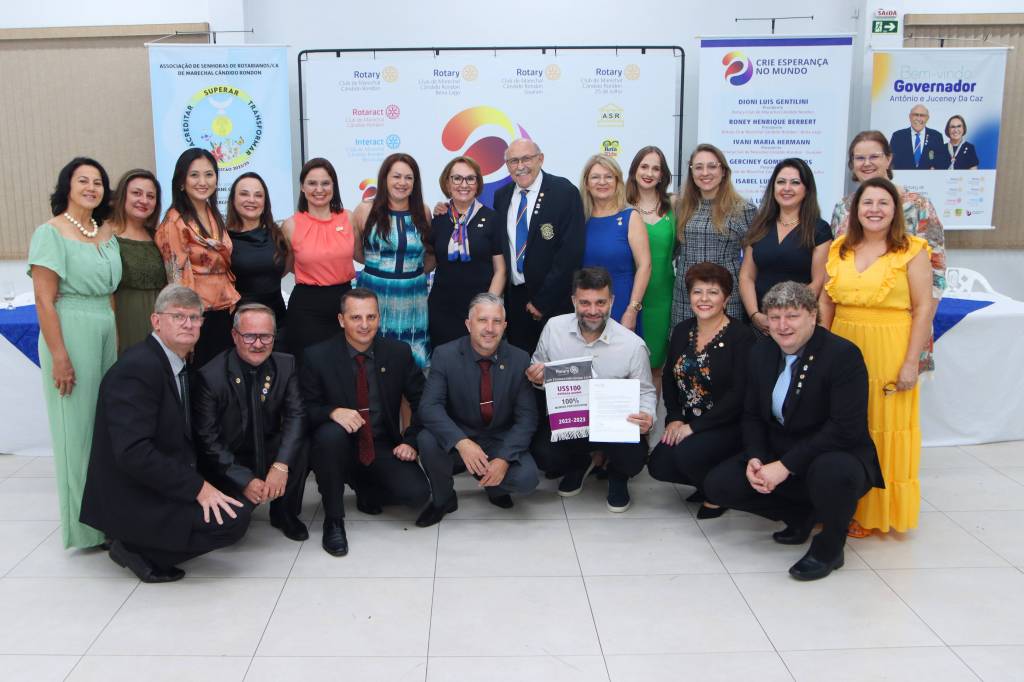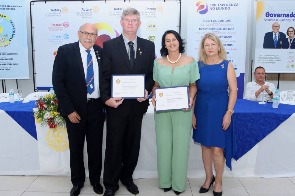 Aos companheiros do Rotary Club de Marechal Cândido Rondon - Guarani, foram feitas as seguintes entregas de honrarias: 1° Paul Harris ao companheiro Rafael Sturm e também para a companheira Maria Zezinha Mantovani; 3° safira para a companheira Josiane Wiedmer; reconhecimento de doação para a Fundação Rotária da gestão anterior presidida pelo companheiro Ronaldo Rossarola e, a parabenização para a companheira Silmara Pazini, que assumirá a Coordenação de Imagem Publicação da Região 31 no próximo ano Rotário.