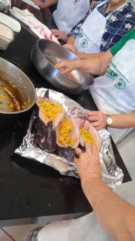Este curso de derivados de pescado visa a capacitação de mulheres da comunidade, através de cursos ministrados por parceiros, com o foco em treinamento e qualificação no processamento de alimentos, possibilitando o aproveitamento de alimentos, sendo uma alternativa para geração de renda de mulheres e suas famílias.