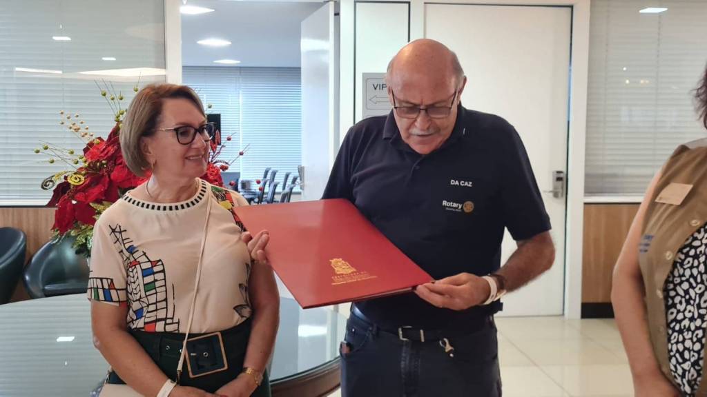 No dia 19 de novembro de 2023, o Governador do Distrito 4640 Gestão 2023-24 , Antonio Da Caz e sua esposa Juceney Da Caz, foram recepcionados pelo Presidente do Rotary Club de Foz do Iguaçu-Costa Oeste Gestão 2023-24 Marcos Antonio Jahnke e sua esposa Debora, e na ocasião foi entregue das mãos do presidente Janke o título de hóspedes oficiais do Município de Foz do Iguaçu, momento descontraído onde também teve a participação da Governadora Assistente Wilsa Carla Silva da área 06 e companheiros do Rotary Clube de Foz do Iguaçu-Grande Lago. Momento descontraído onde todos envolvidos nesta acolhida, puderam dar as boas vindas ao casal governador em nome de toda Família Rotária de Foz do Iguaçu.