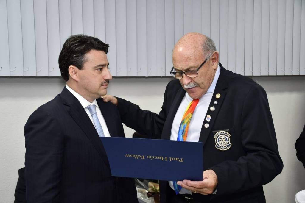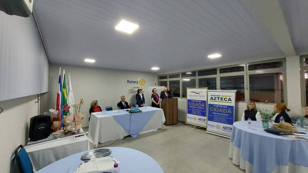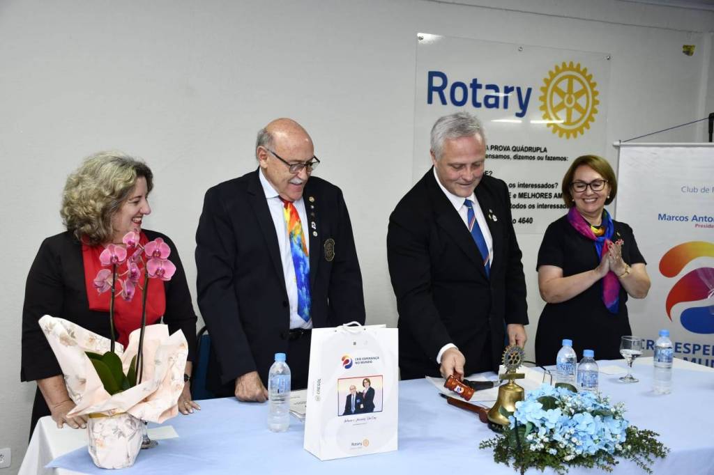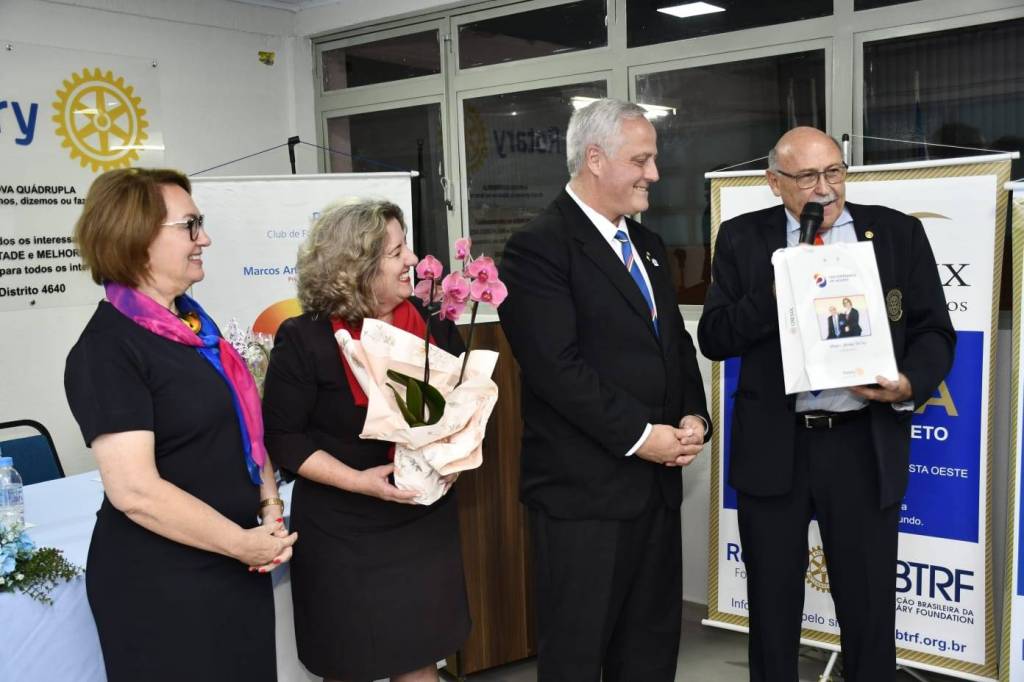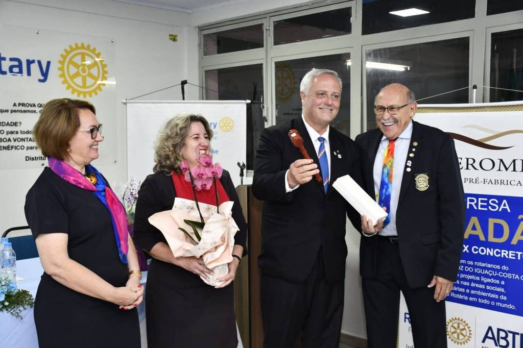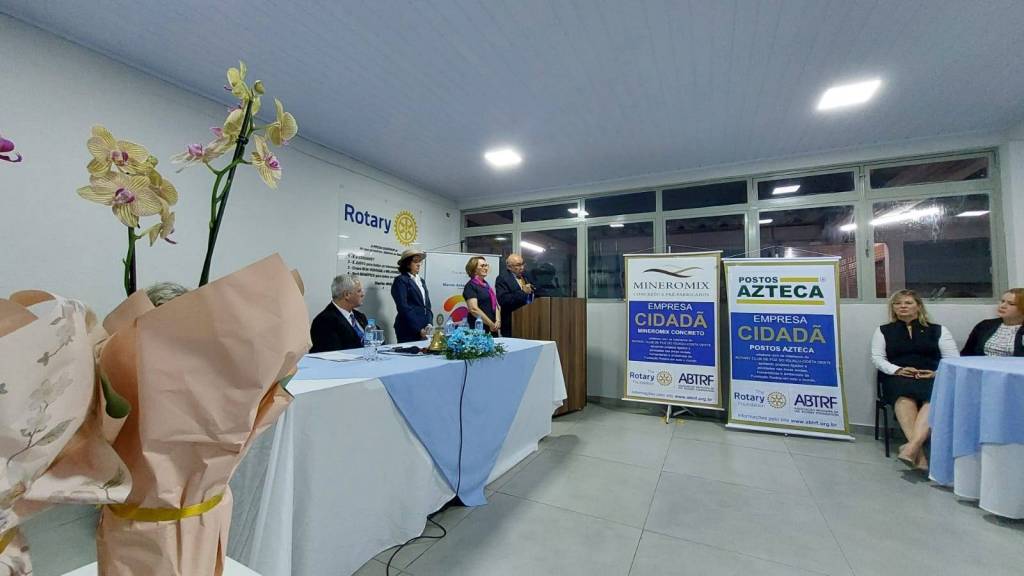 Na noite do dia 23 de novembro as 20:00 hr, aconteceu a Festiva da Visita Oficial do Govrnador do Distrito 4640 Gestão 2023-24 Antonio Da Caz e sua esposa Juciney ao Rotary Club de Foz do Iguaçu-Costa Oeste. Na ocasião muito esperada por todos companheiros do clube, tivemos a admissão de 4 novos companheiros no Quadro Associativo do clube os companheiros Cleverson José Teixeira, Maurício Pedroso Ribeiro da Silva, Gustavo Viana do Nascimento e Pedro Antonio Crocetta, sendo que o companheiro Pedro foi associado ao Rotary Club de São Ludgero (Distrito 4652) e o novo companheiro Gustavo oriundo do Rotaract de Sta Terezinha de Itaipu. Após a cerimônia de admissão foram homenageados os proprietários da empresa Mineromix, o Sr. Jonathan Barbiero na companhia de seu pai para receber o Título Paul Harrys Fellow Gestão 2022-23 oriundo de um ano na participação na ABTRF Empresa Cidadã, motivo de alegria pela entrega do título como também, pela renovação de mais um ano apoiando o Programa ABTRF Empresa Cidadã e em contrapartida homenageamos a mais nova empresa a participar do programa ABTRF Empresa Cidadã , recebendo os aplausos e agradecimentos de todos presentes em nome da empresa Rede de Postos Azteca na pessoa do empresário, Sr. Walter Venson atualmente companheiro no Rotary Club de Foz do Iguaçu. Logo em seguida o encontro festivo de companheirismo e amizade foi presenteado com um delicioso jantar acompanhado com muita alegria e descontração.