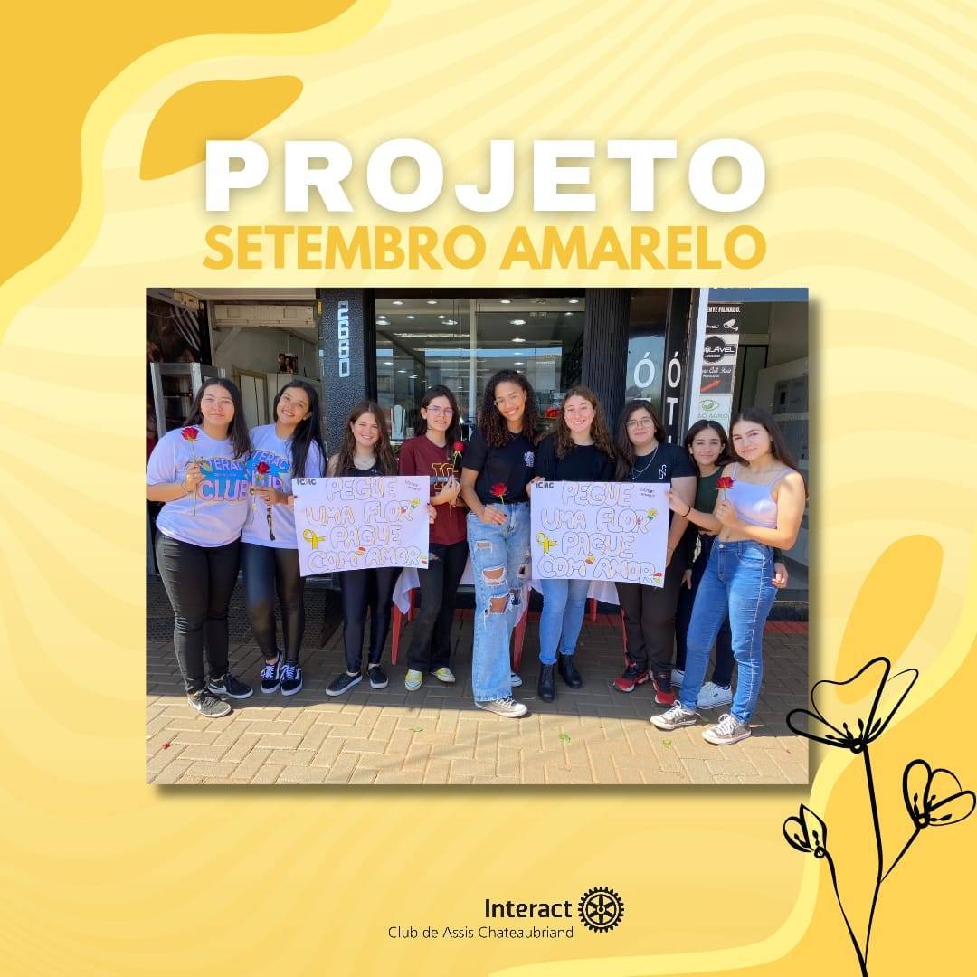 Na manhã do dia 16 de setembro o Interact Club de Assis Chateaubriand se reuniu para a realização do projeto Pegue uma Flor e Pague com Amor em razão a campanha do Setembro Amarelo.