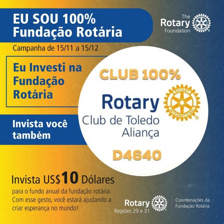 O Rotary Club de Toledo Aliança é 100% Fundação Rotária.