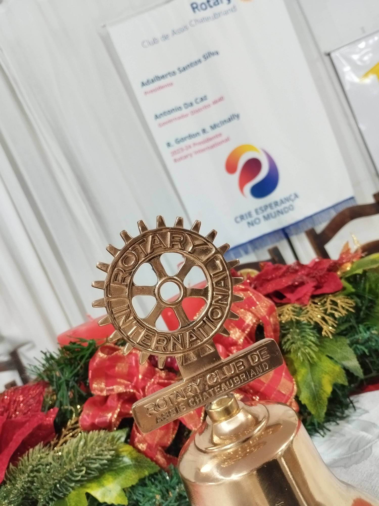 O mês de dezembro de 2023, no Rotary Club de Assis Chateaubriand, aconteceram várias ações para concluir as atividades do primeiro semestre do ano rotário 2023-24. De início aconteceu a leitura da ata de fundação do dia 12 de dezembro de 1997, há 46 anos, com um bom tom de nostalgia e com as publicações em rede social dos projetos e presidentes ao longo desse tempo. A apresentação de slides sobre as atividades 2023-23 de julho a dezembro e sua mensagem de natal auferida pelo presidente Beto. A noite foi abrilhantada com a posse de um novo associado, Marcos Roberto Poleto klein Vicente, com classificação de funcionário público municipal - Professor Ensino Fundamental tendo seu padrinho Claudiney Lucio. Foram homenageados os companheiros Lucidio Rech e Ogenilson com a Moneclatura R85, quando da idade natural e data de admissão em Rotary, faz 85 anos. NA sequencia, a Fundação Rotária é o braço benevolente do Rotary pra investimentos em ações, projetos nas 07 áreas de enfoque , onde cada rotariano se propõe a doar e confiar na maior organização de respeito e de organização na aplicabilidade de seus recursos. No mês da Fundação Rotária (novembro), está acontecendo a CAMPANHA SOU 100% FUNDAÇÃO ROTÁRIA, com a doação de U$10,00 e o Rotary Club de Assis Chateaubriand não é diferente de muitos Rotary Clubs e de seus Rotarianos e aqui evidenciamos nossos doadores dessa Campanha: Vanderlei, Rafael, Vinício, Marco Antonio, Claudiney Lucio, Luiz Von, Erasmo e Marcos Poleto e com a doação de U$ 1.000,00 (hum mil dólares) para a Fundação Rotária, ESPECIFICAMENTE para o Fundo Anual. A FUNDAÇÃO premia seus agraciados com Títulos Múltiplos de Paul Harris recebendo o Título de Safira 4, Vinicio de Castro e Título Safira 5 para Vanderlei Fioresi, com o fechamento da reunião, a mensagem de Natal da Intercambista Wei Lun Hung – Elenor: Feliz Natal, querida família! Neste Natal, vamos nos lembrar de que os momentos preciosos que compartilhamos são os verdadeiros presentes. Que nossa família continue sendo o nosso maior tesouro. Assim como os sinos de Natal ressoam com alegria, que nossos corações ressoem com gratidão por termos uns aos outros e uma mensagem do Interact Club: Chegou a data mais especial do ano, um tempo de paz e harmonia que nos permite esquecer todos os problemas e reunir as pessoas que mais amamos em volta da mesa. Os momentos de felicidade mais pura podem ser também os mais simples: a família unida, o riso que toma conta da casa, o entusiasmo no rosto das crianças, o carinho que transborda em todos os corações. Desejamos que o amor que há entre nós neste dia permaneça nas nossas vidas para sempre. São os votos do Interact Club de Assis Chateaubriand. Um Santo e Feliz Natal!