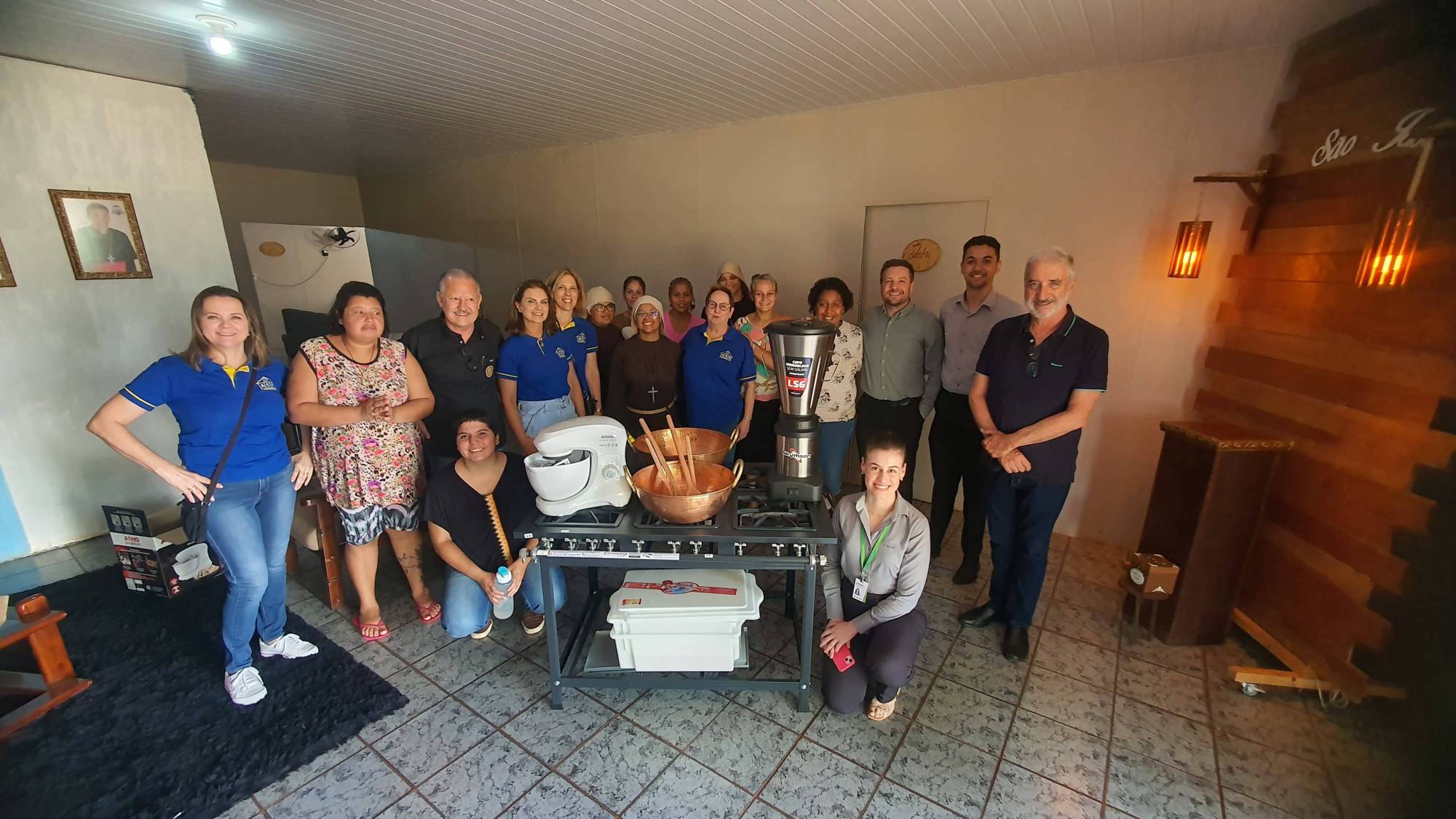 Na manhã de hoje (24/01/2024) o Rotary Club de Cascavel, em parceria com a ASR Cascavel e Sicredi, realizou a entrega de materiais para a Fraternidade O Caminho. A doação de um fogão industrial, batedeira, liquidificador e demais utensílios, possibilitará às irmãos e filhas prediletas a fabricação de geleias no local. Essa doação é a primeira etapa de um projeto que visa construir uma nova cozinha na casa de acolhimento.