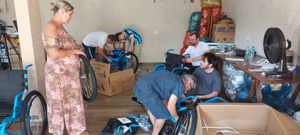 Após a conclusão do treinamento, os companheiros do Rotary Club de Pato Branco Amizade colocaram imediatamente em prática o que aprenderam. Com grande entusiasmo e determinação, eles montaram as 18 cadeiras de rodas recentemente recebidas do Projeto Mobilidade para Todos.
