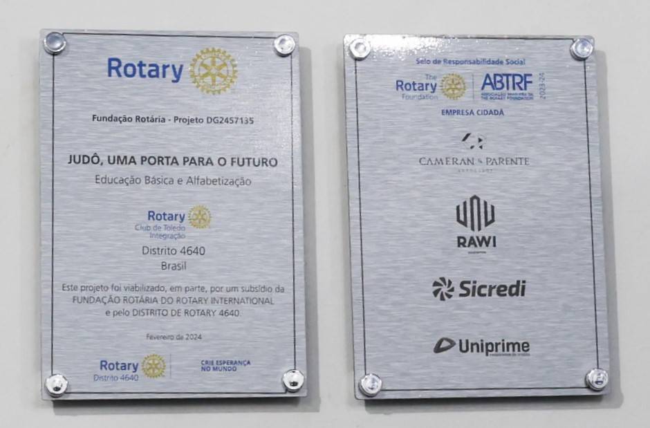 Com a presença da presidente da Comissão da Fundação Rotaria do Distrito 4640, Sonia Taube Linero, Governadora Distrital na gestão 2018/2019, do Presidente do Rotary Club de Toledo Integração, Cesar Alves, do Governador indicado para a gestão 2025/2026 do Distrito 4640, Wilson José Schiavinato Junior, do Governador Assistente da Área 4 do Distrito 4640, Jeferson Paulo Fink, do diretor de Projetos Humanitários do Integração, José Mario Schmidt, de associados do club, pais e amigos dos judocas, a Associação de Pais e Amigos do Judô de Toledo, representado pelo seu presidente Paulo Vanderlei Sanches, recebeu os itens do Projeto Distrital ”JUDÔ – UMA PORTA PARA O FUTURO”, em solenidade que aconteceu na noite de 26 de fevereiro, na cidade de Toledo (Pr).