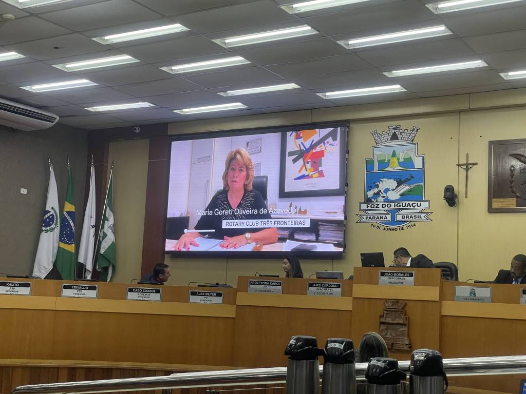 Em reconhecimento ao trabalho desenvolvido pela Família Rotária de Foz do Iguaçu, a Câmara Municipal de Vereadores desta cidade entregou “Moção de Aplausos” a Família Rotária através da Vereadora Anice Gazzaoui, neste 04/03/2023.
