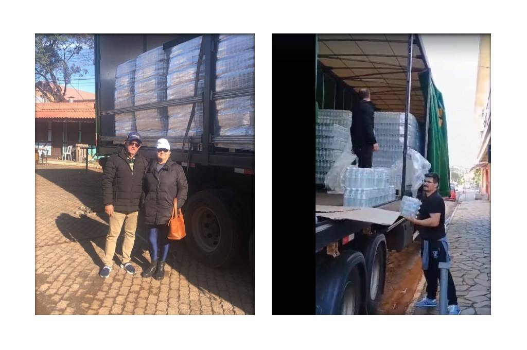 Mais uma carreta de água mineral foi enviada para o Rio Grande do Sul para auxiliar as famílias afetadas pelas enchentes que atingiram o estado. A ação, fruto da parceria entre a ACICAP - Associação Comercial e Industrial de Capitão Leônidas Marques e a empresa de água mineral Elevatta, possibilitou a entrega de 58.800 unidades de água potável.