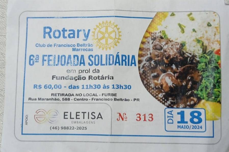 Dia 180524 foi realizada a 6 ªFeijoada Solidária, com a venda de 400 ingressos.