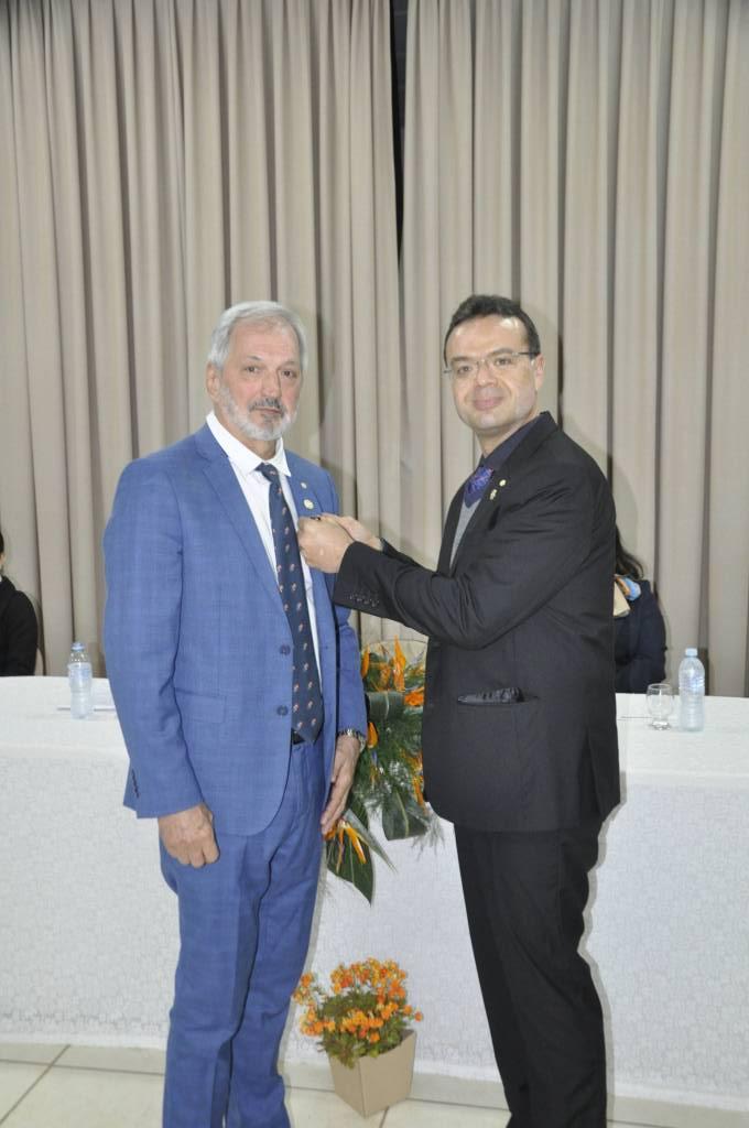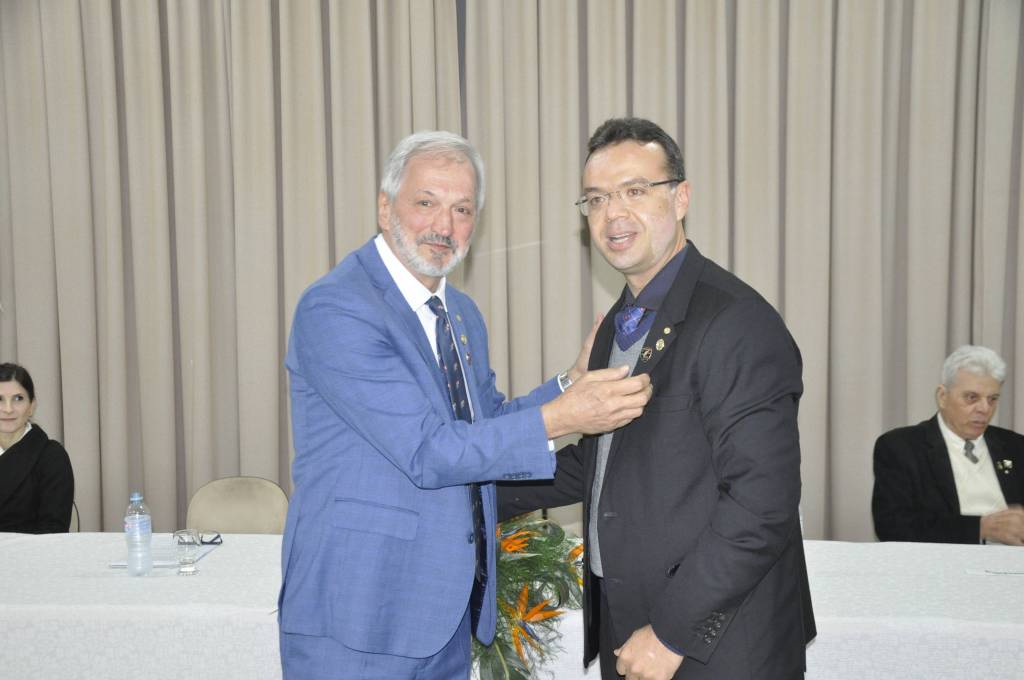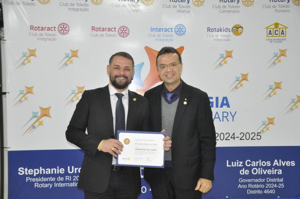 Durante a cerimônia, o companheiro Reinaldo foi agraciado com o título Paul Harris, reconhecimento merecido por seu comprometimento com os ideais humanitários do Rotary.