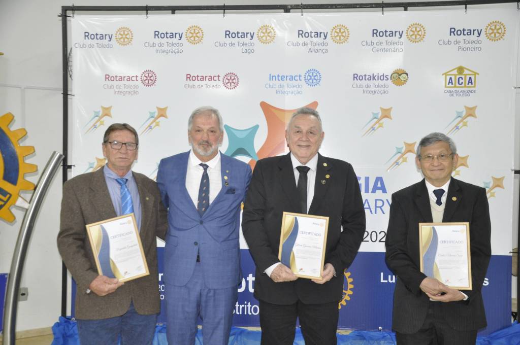 Além disso, a noite foi enriquecida com homenagens emocionantes aos companheiros com mais tempo de clube, cuja dedicação ao longo dos anos tem sido responsável pelo sucesso e impacto positivo do Rotary Club de Toledo-Lago na comunidade.