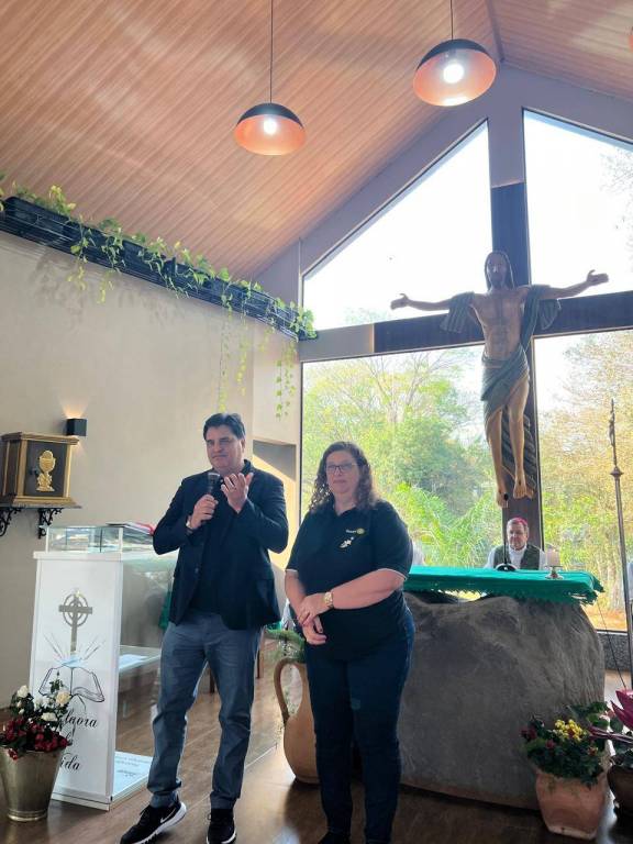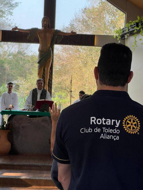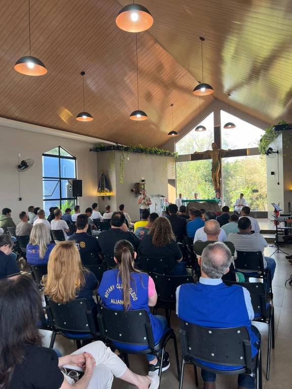 Acompanhados da Governadora Assistente, Marlene Hickmann, iniciaram a jornada recepcionados pelo Presidente Diego Galante e demais companheiros do Rotary Club de Toledo-Aliança, onde juntos visitaram a Fazenda da Esperança Cristo Rei de Toledo. Na Capela Jesus Bom Pastor, anexo à Fazenda, participaram da Celebração da Santa Missa, presidida pelo Arcebispo Emérito de Maringá, Dom Anuar Battisti. Momento de espiritualidade, reflexão e Fé compartilhado com os 60 acolhidos que estão em recuperação na referida entidade.