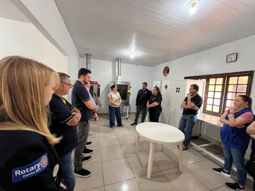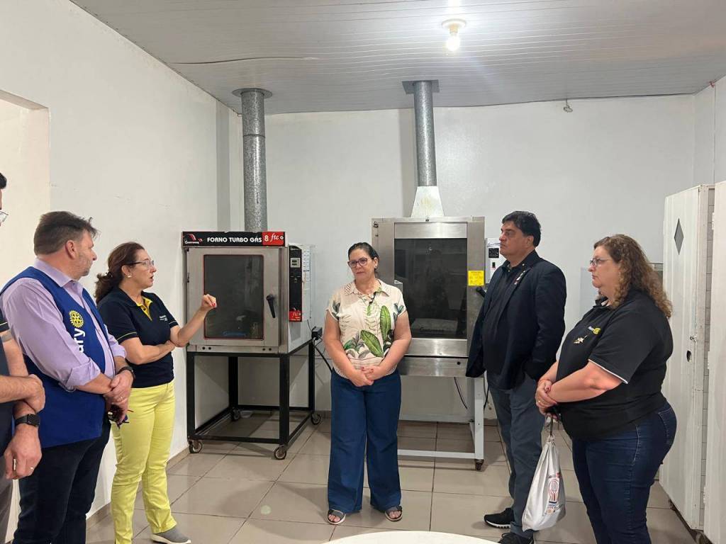 Na sequência a comitiva teve oportunidade de conhecer as instalações da comunidade terapêutica, em especial a Panificadora, esta equipada com recursos oriundos de projetos e ações do referido clube, sendo atualmente, uma das fontes de renda para manutenção da Fazenda, com a produção e comercialização de pães, cucas e bolachas.