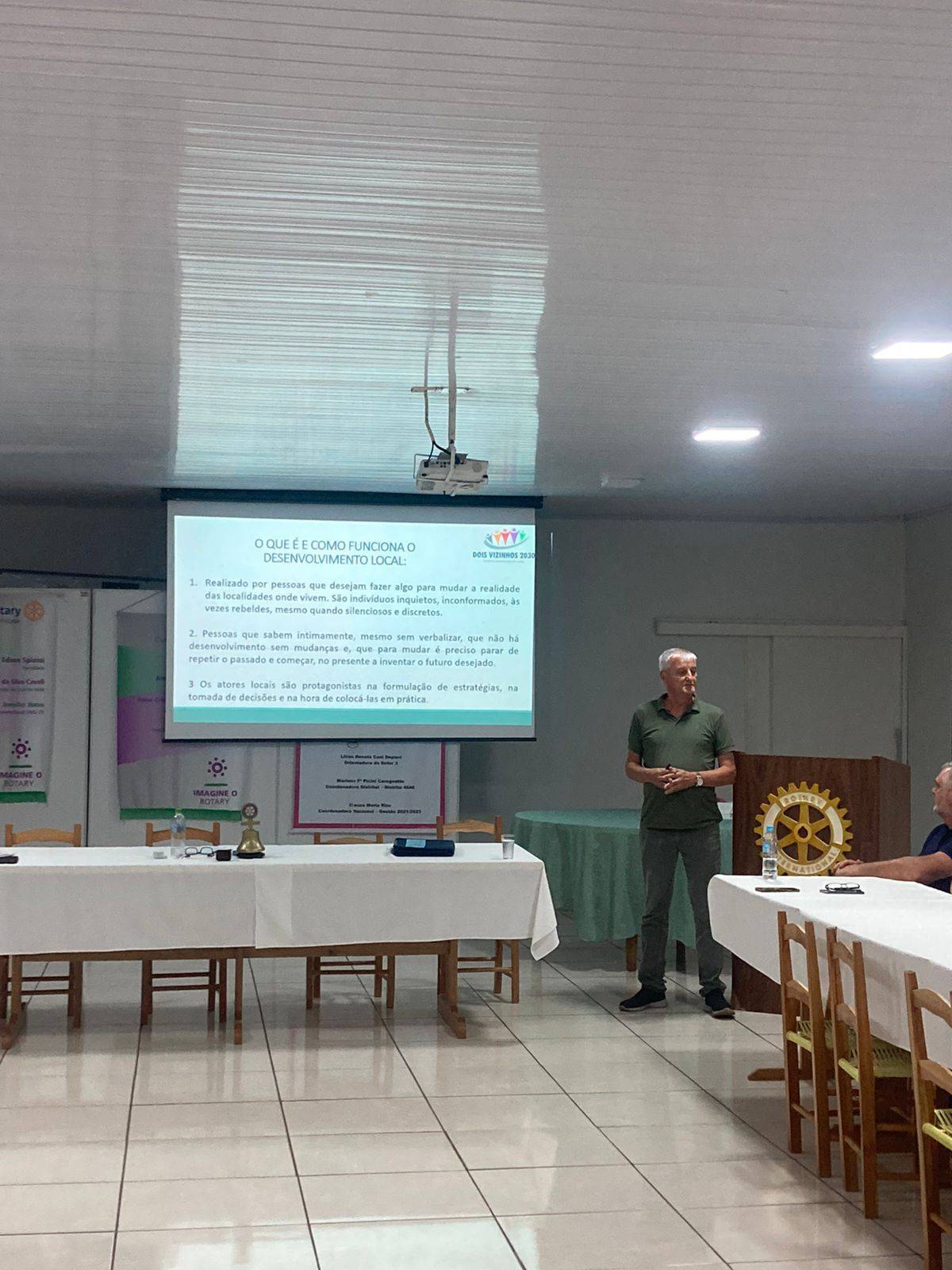 Rotary Club de Dois Vizinhos- Amizade participa da construção do plano de desenvolvimento local, Dois Vizinhos 2030. Na noite de 14 de fevereiro o coordenador do projeto Luiz Carlos Peretti, explana sobre o plano e as metas para o desenvolvimento da cidade.