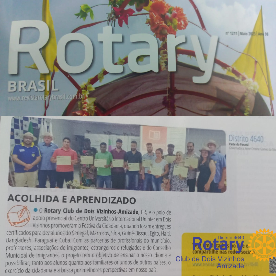 ROTARY Brasil- www.revistarotarybrasil.com.br Edição nº1211/maio de 2023 ano 98- Rotary Club de Dois Vizinhos-Amizade