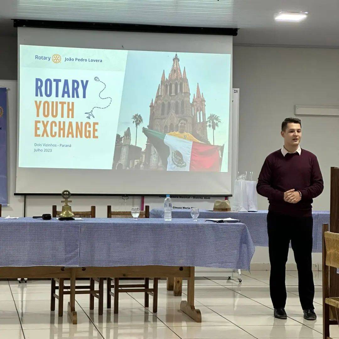 O Rotary Club de Dois Vizinhos Amizade contou com a presença em reunião do Alumni João Pedro Lovera que realizou intercâmbio em 2017/2018 para o México. João explanou ao clube como foi sua experiência como intercambista. Aproveitou o momento para agradecer ao clube a oportunidade e o quanto isso impactou para o seu crescimento pessoal e profissional.