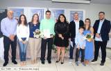A presidente Deise Cristina Rodrigues Colaço Klein, empossou os novos integrantes do Rotary: Edison Roberto Fiorin e Fernando José de Mello, na foto com familiares e padrinhos Edson Spiassi e Jean Carlo Falchetti.