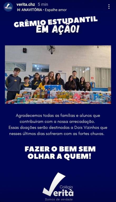 "Fazer o bem sem olhas a quem" Colégio Verità de Chopinzinho.