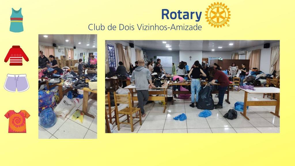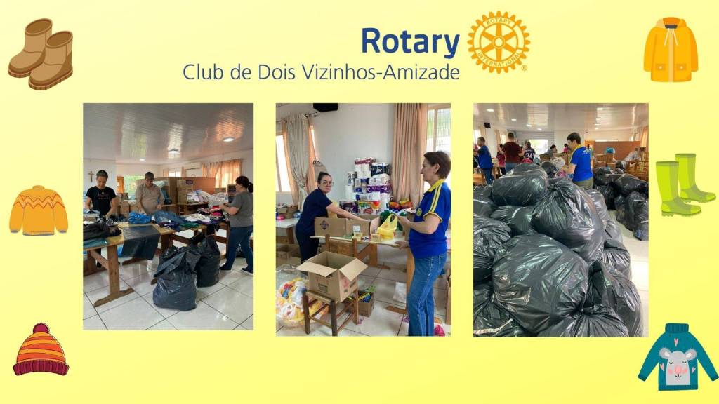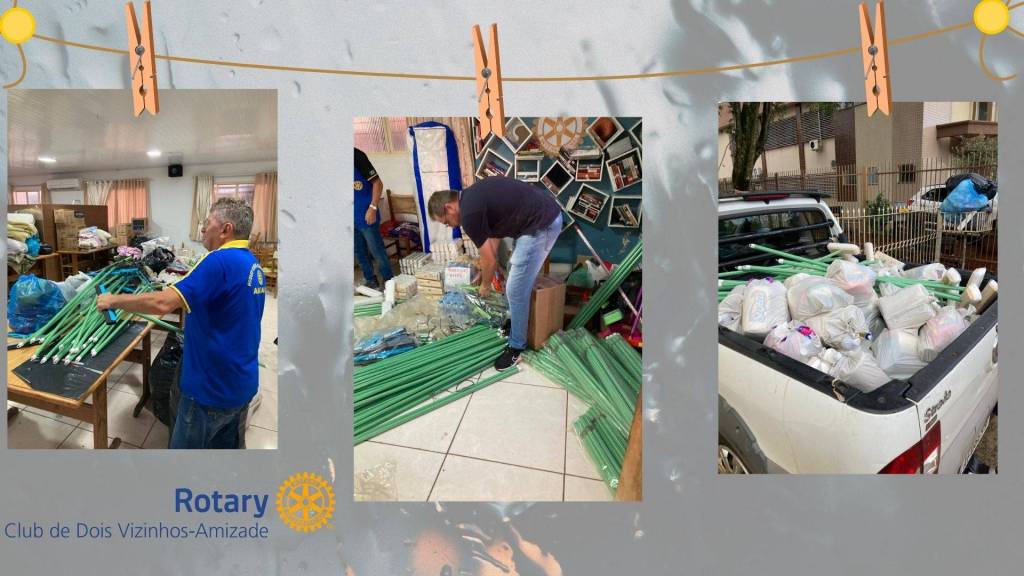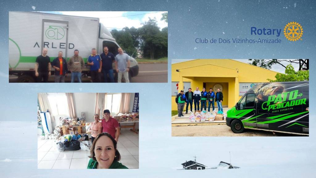 Diante dessa situação e como clube de serviço o Rotary Club de Dois Vizinhos-Amizade junto com a Familía Rotária de Dois Vizinhos abraçaram a causa e se empenharam na coleta de donativos através de pix, roupas, móveis, alimentos, material de limpeza material de higiene, água e também apoiando às famílias atingida através de alguns companheiros que doaram o seu tempo em ajudar diretamente.