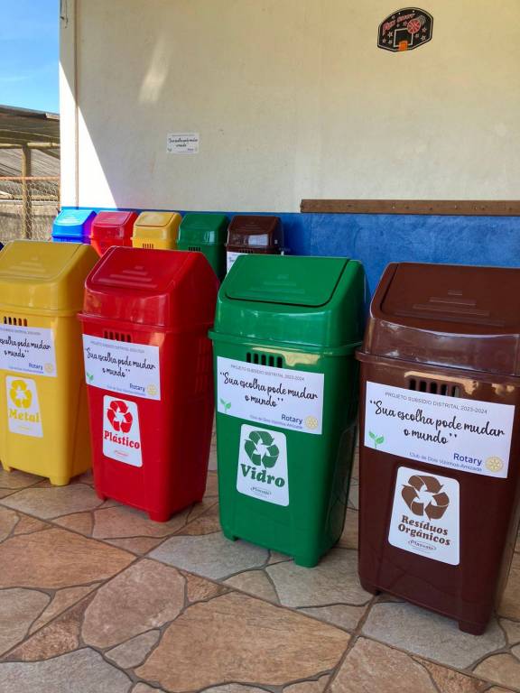 Com o objetivo de incentivar e promover a separação do material reciclável do lixo comum, contribuindo assim para a preservação ambiental, o Rotary Club de Dois Vizinhos Amizade em parceria com o Interact Club de Dois Vizinhos Amizade, por meio de recursos oriundos de Subsidio Distrital e próprios, iniciou na última quarta-feira (13), a entrega de conjuntos de lixeiras para coleta seletiva de material reciclável, brincadeiras lúdicas e coletivas, apresentação de vídeos sobre coleta seletiva, confecções de materiais educativos por meio de sucatas recicláveis e retornáveis, realização de brincadeiras e jogos com material reciclável nas seguintes Instituições: Programa Integracao Aabb Comunidade De Dois Vizinhos, APADV ASSOCIAÇÃO DE PROTEÇÃO DOS AUTISTAS DE DOIS VIZINHOS e ASSOCIACAO CASA DA PAZ DE DOIS VIZINHOS.