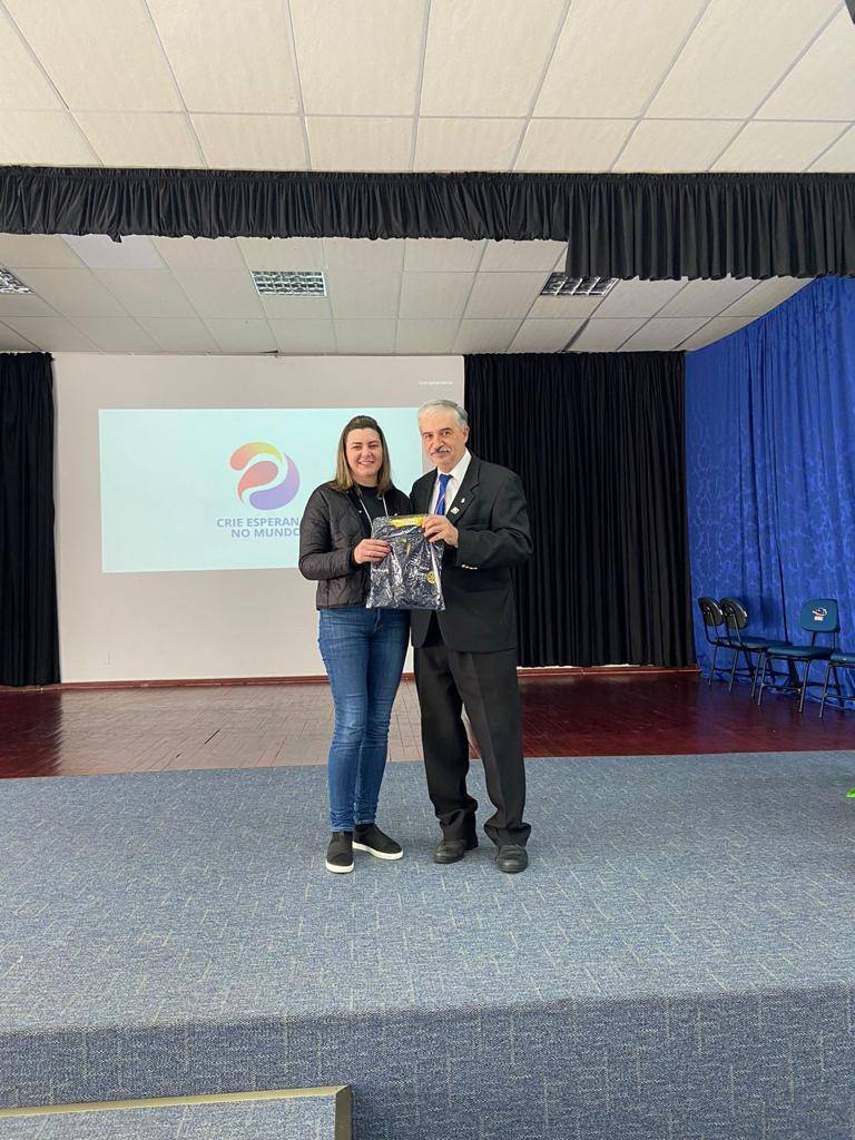 Participação da Mentoria Rotária Online, onde houve sorteio de mimo, que neste dia o Governador Emilio Fernando Martine, Presidente da Comissão do DQA do Distrito 4640 faz a entrega pessoalmente a ganharora do mimo.