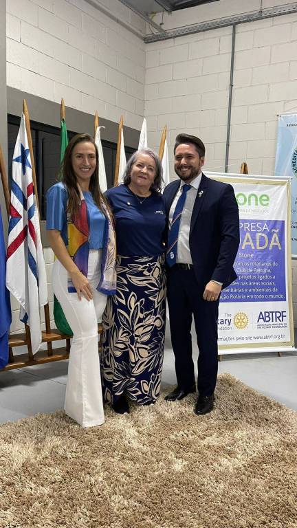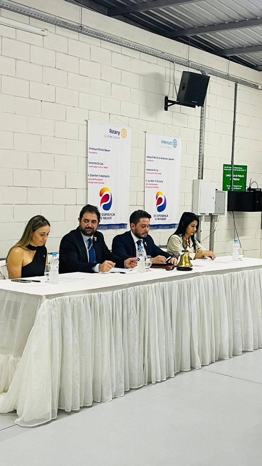 Vinicius agradeceu a todos os companheiros do clube, presenteando-os com o pin de presidente em reconhecimento ao apoio e dedicação de cada um para o sucesso dos projetos e atividades ao longo do ano. Em sua fala, destacou a importância da colaboração de todos e agradeceu à sua família pelo constante apoio e suporte.