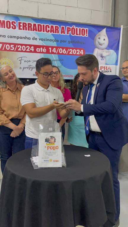 A noite também foi marcada pelo sorteio de uma bicicleta como parte da campanha de vacinação contra a poliomielite promovida pela família rotária. Além disso, juntamente com o Presidente da Associação dos Agrônomos de Palotina, Lucas Pedron, foi realizada a doação do recurso obtido no projeto financeiro "1 Prato Típico" na Expo Palotina para a Associação de Bicicross.