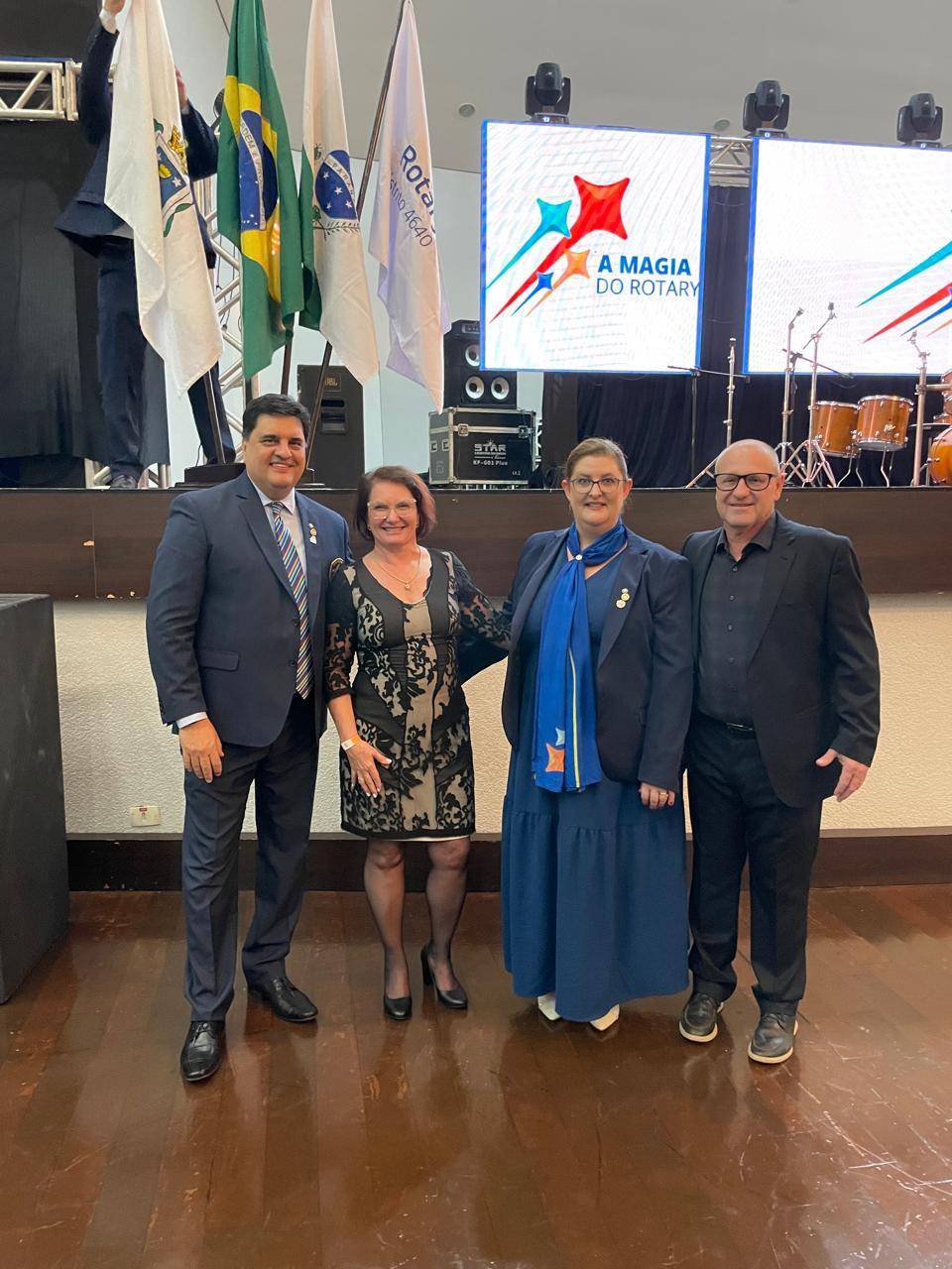 A rotariana de Capitão Leônidas Marques, Elenite Trevisan, e seu esposo Moacir representaram o clube de Capitão no evento de posse do novo governador.