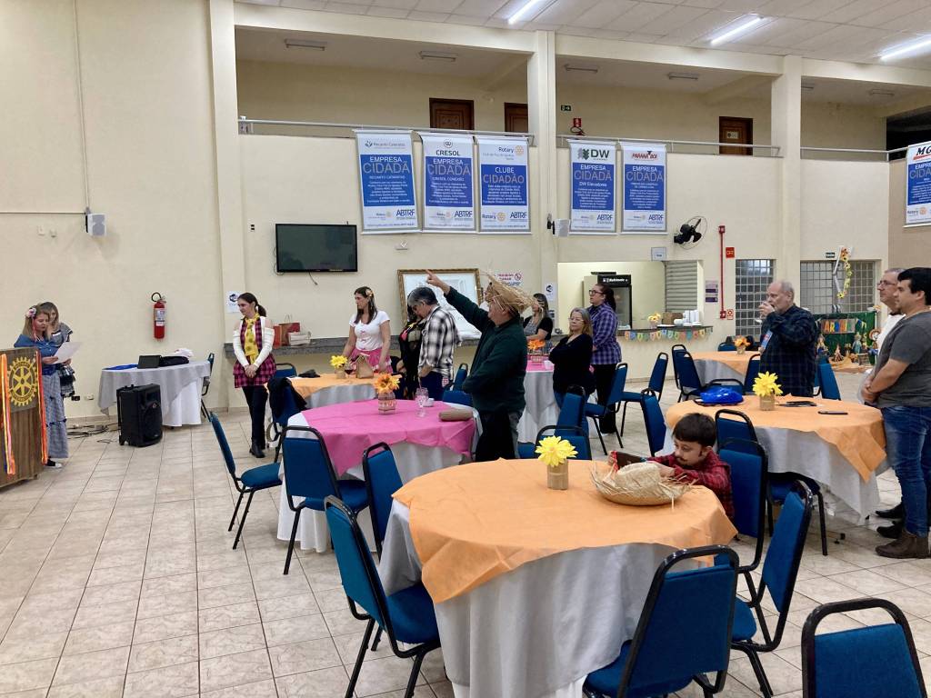 Após a produtiva reunião, os associados do clube e seus convidados desfrutaram de um momento especial durante uma Festiva Julina, celebrando o dia do Amigo e fortalecendo os laços de companheirismo em grande estilo e uma oportunidade de compartilhar deliciosas comidas típicas em um ambiente festivo e acolhedor.